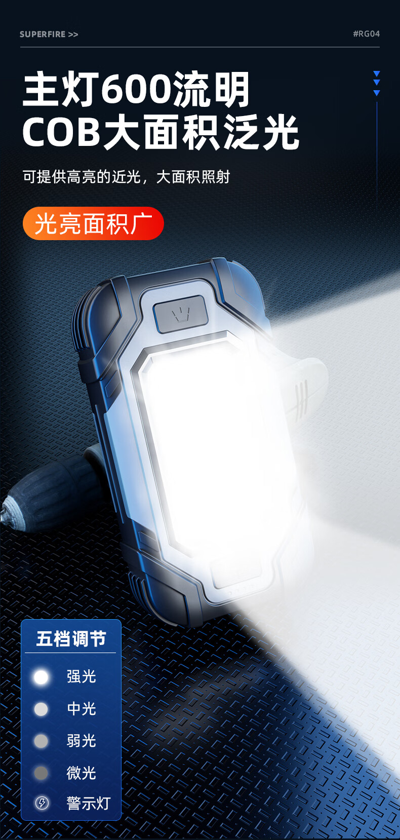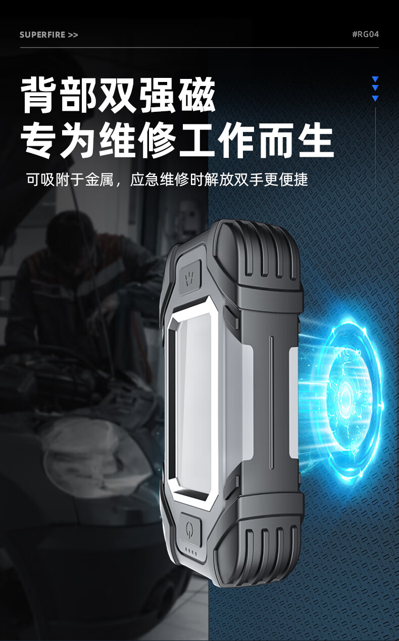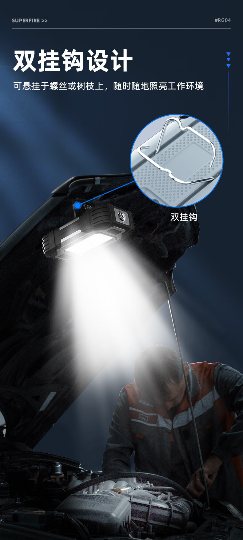 神火(SupFire)RG04多功能工作灯汽修带磁铁应急维修灯充电户外应急强光手电筒