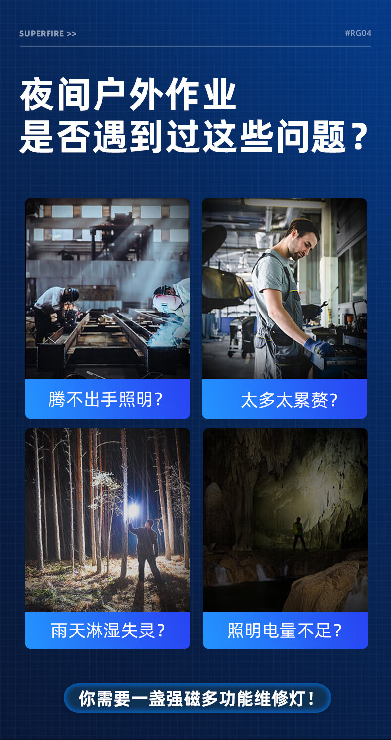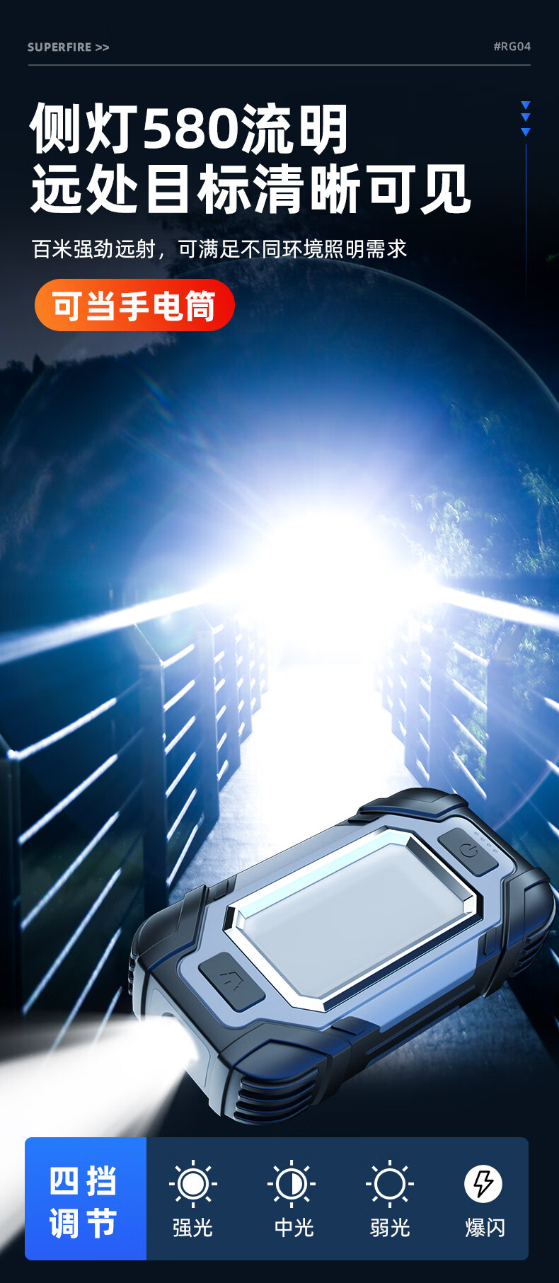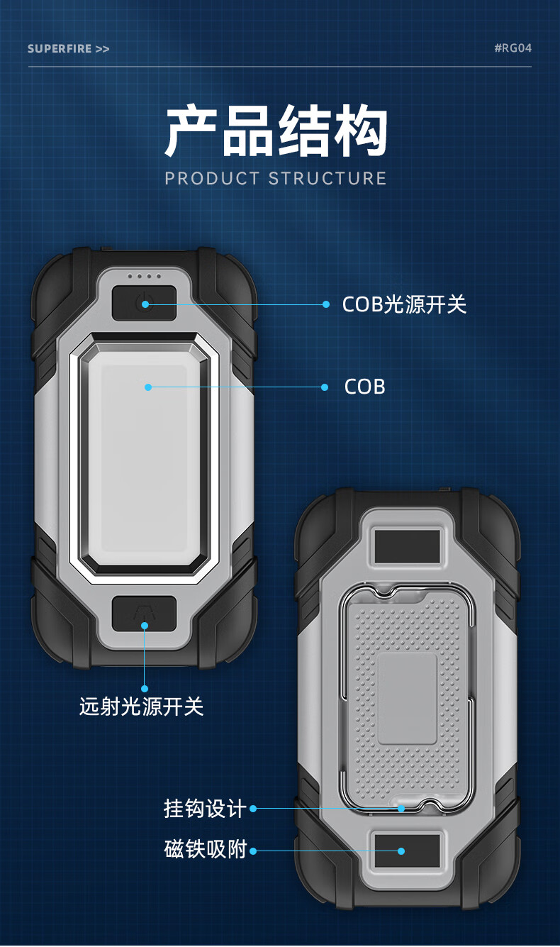 神火(SupFire)RG04多功能工作灯汽修带磁铁应急维修灯充电户外应急强光手电筒