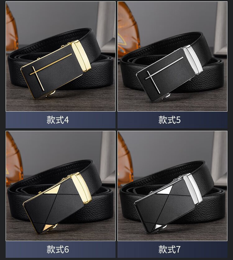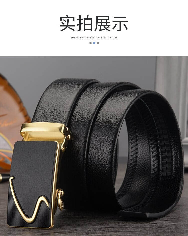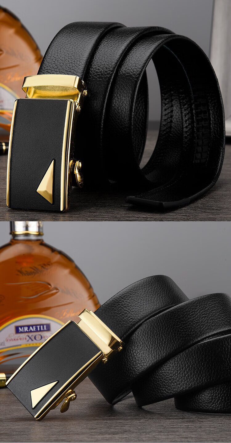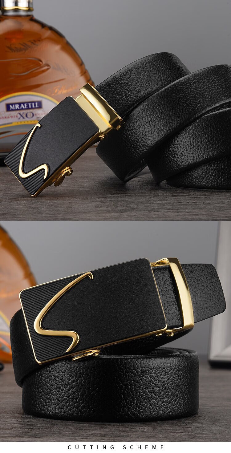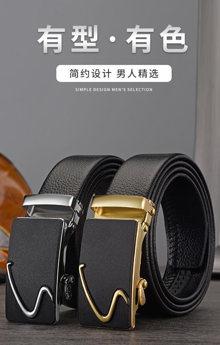 腰带男士仿皮皮带自动扣货源百搭裤带 对角金色