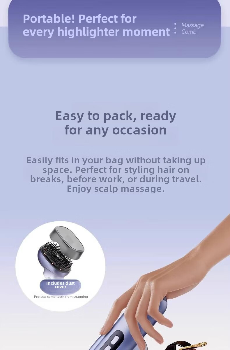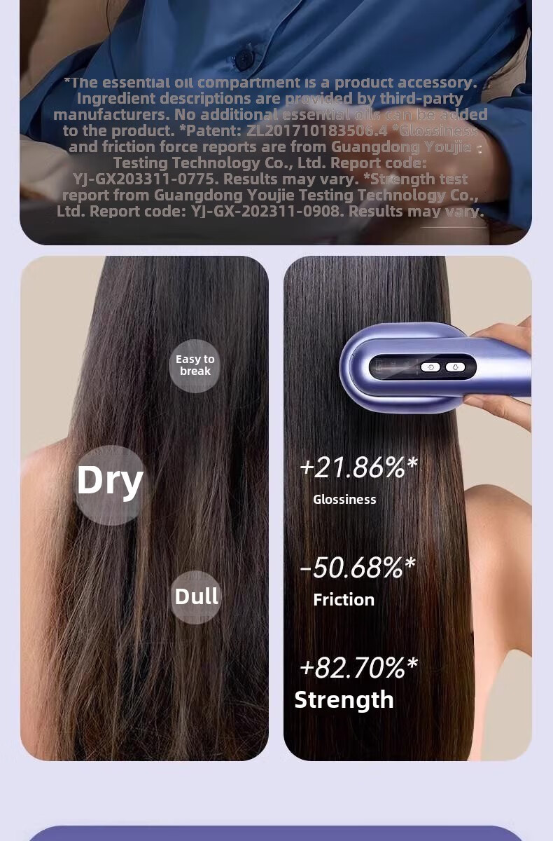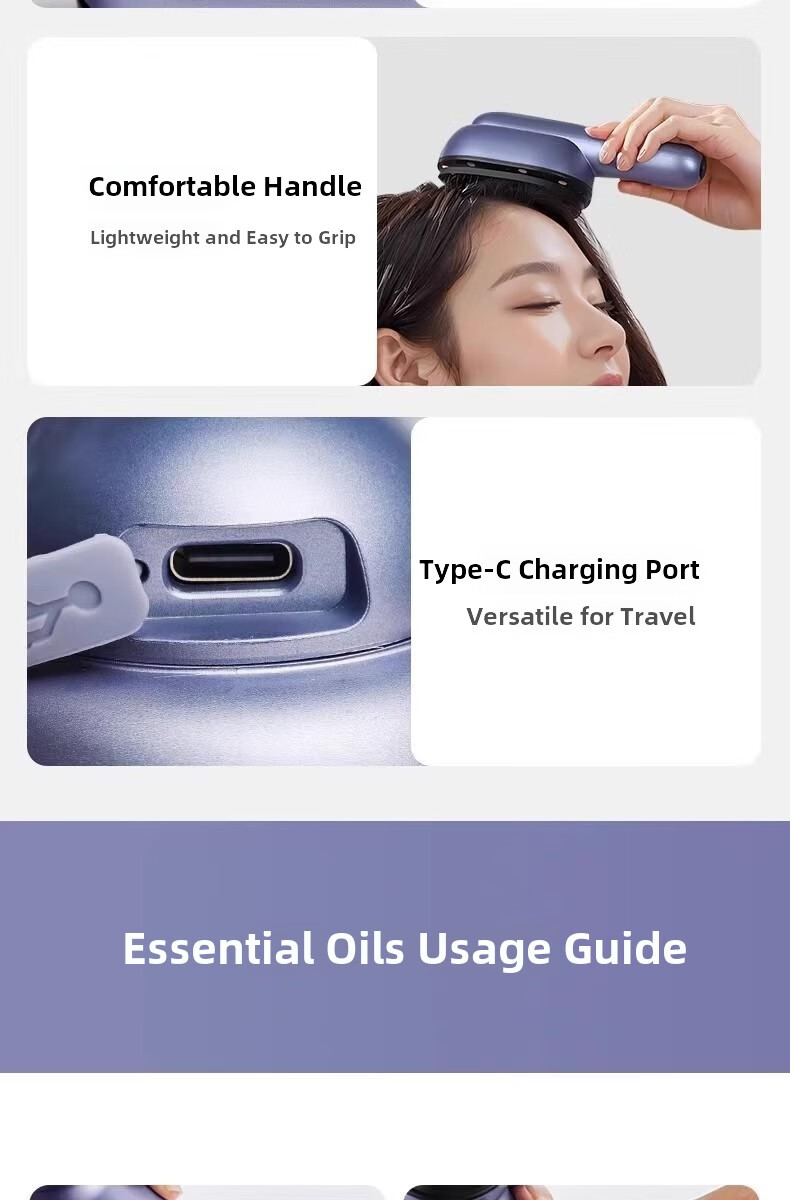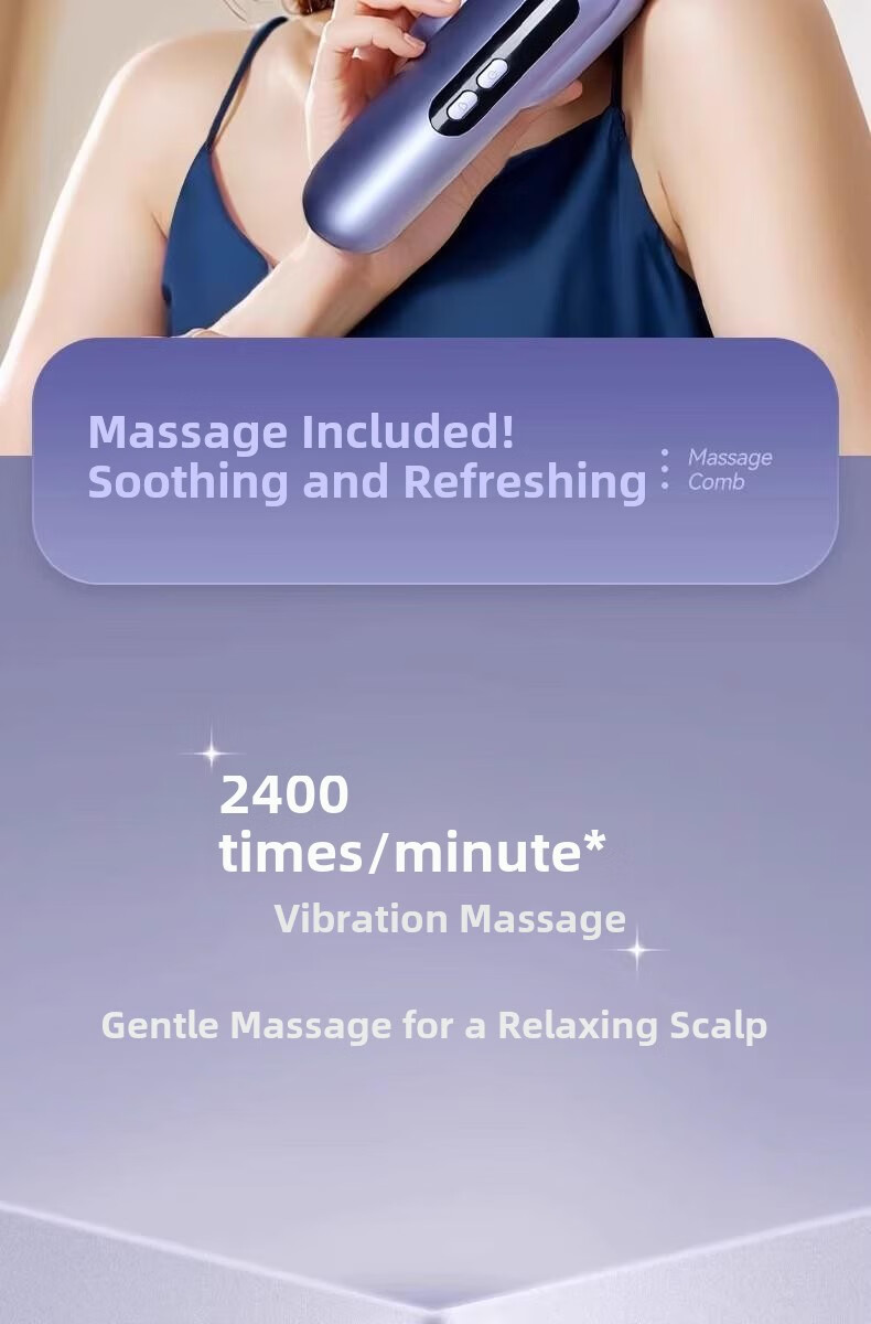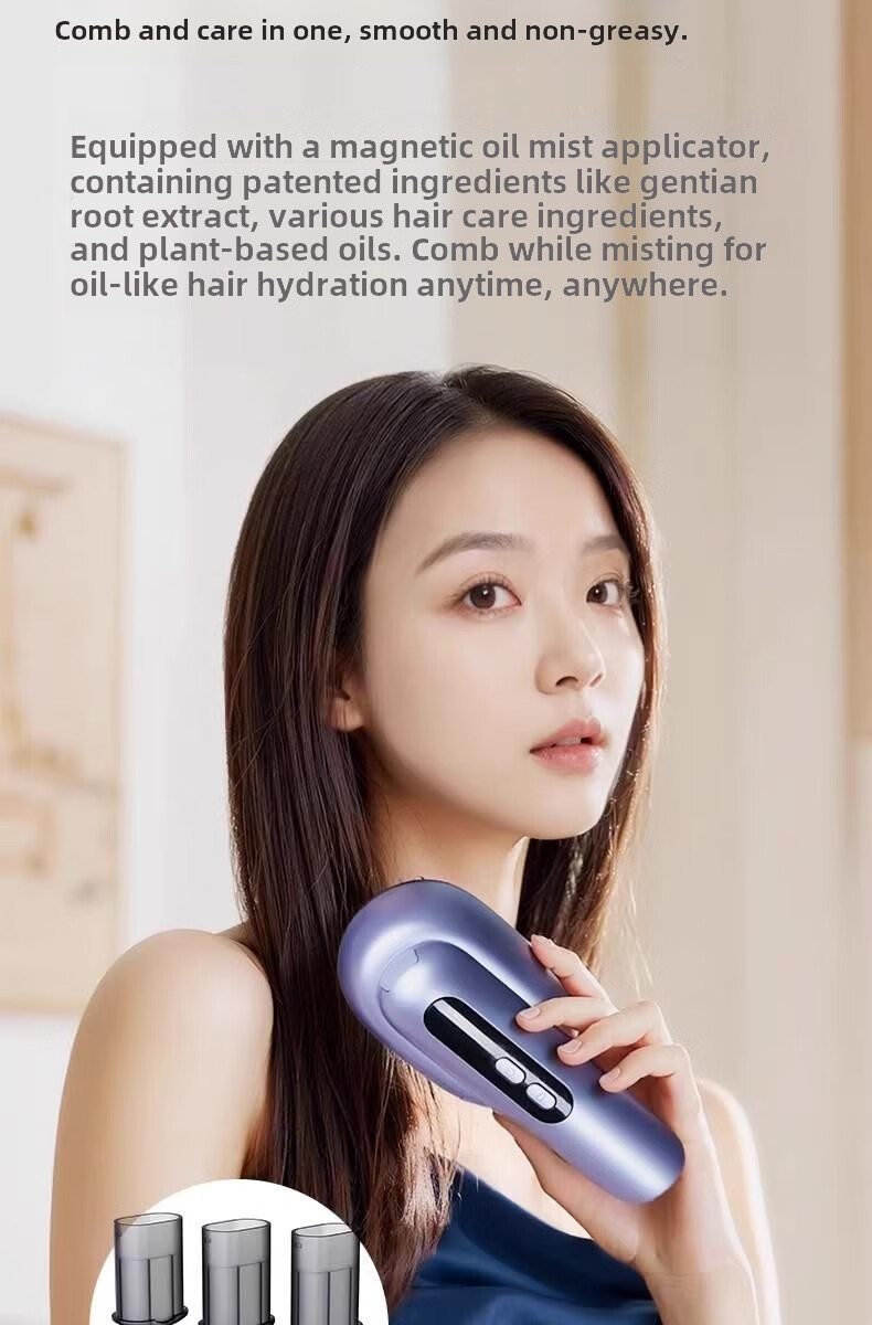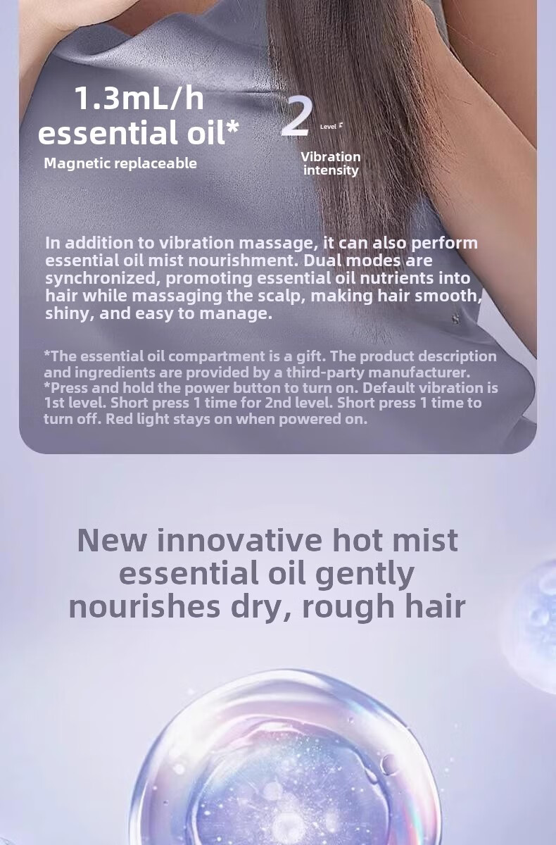 翰鸥斐德国进口品质按摩梳电动精油导入精油梳雾化电动头皮按摩梳 镭射紫【精油雾化+红光照射+震动按摩】送精油弹1