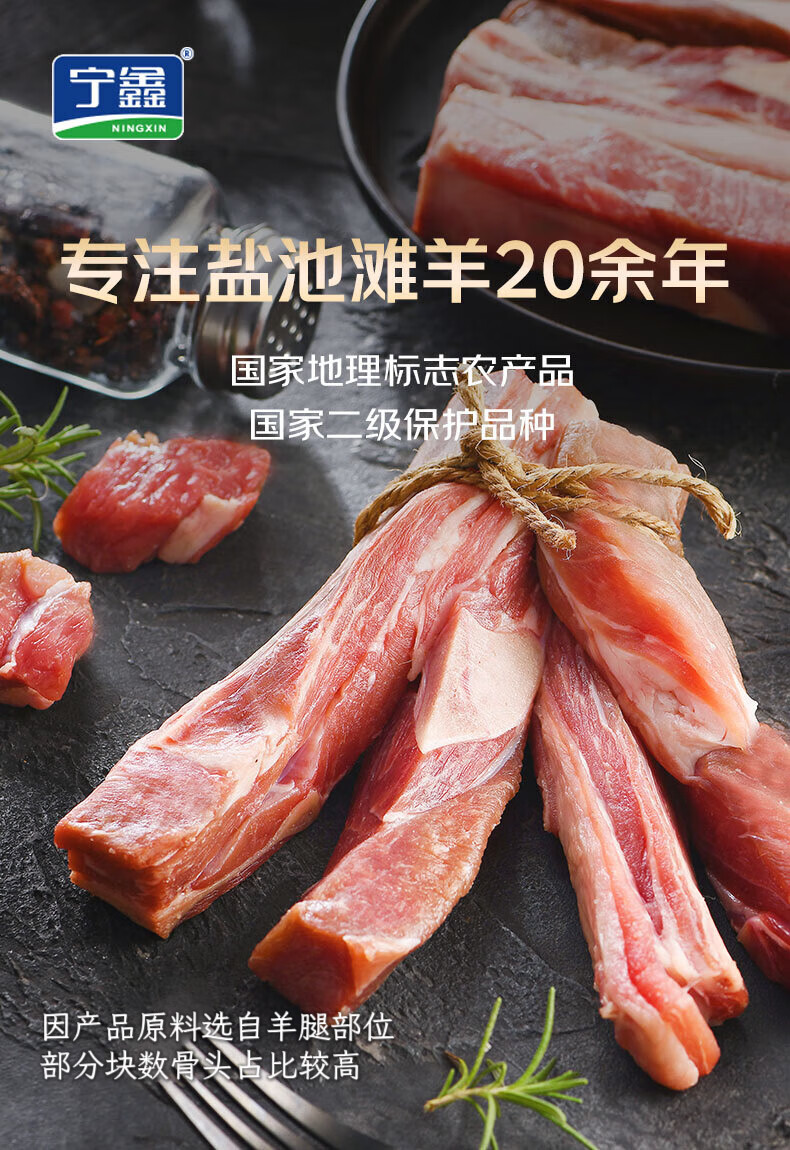 宁鑫 宁夏盐池滩羊 带骨手抓羊肉2斤 生鲜原切炖煮 地标产品