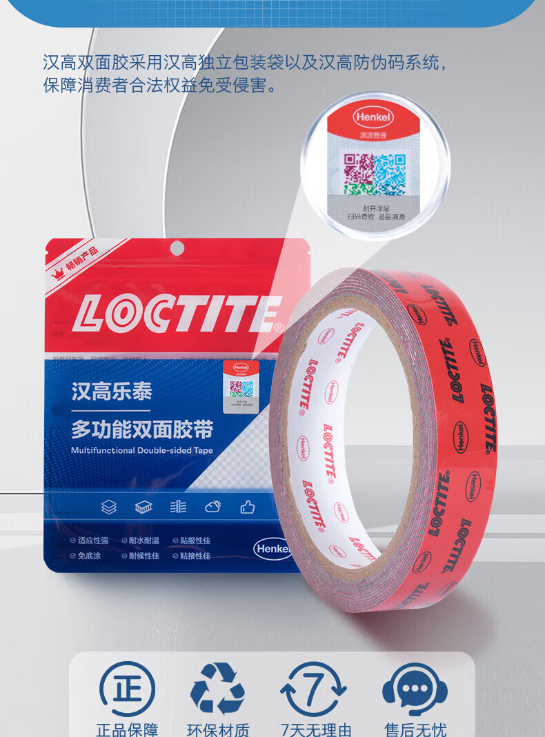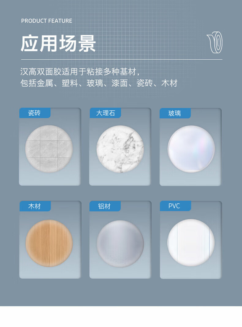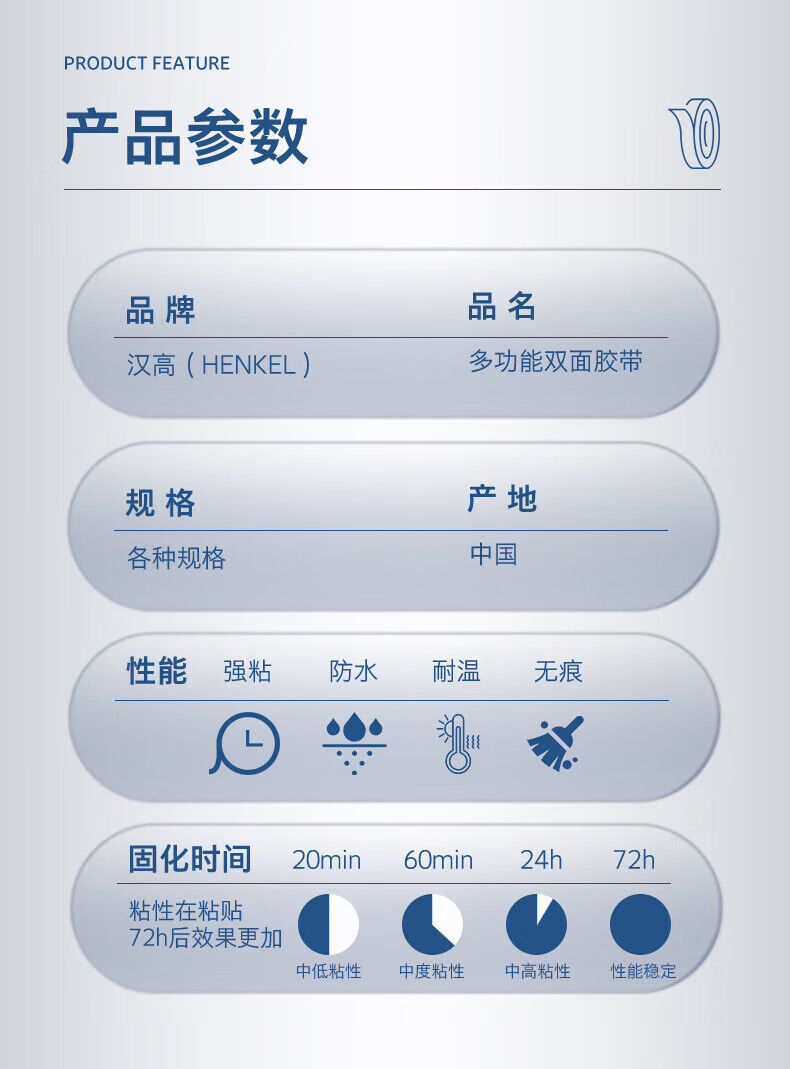 汉高双面胶强力汽车etc无痕耐高温电工胶布防水防滑粘贴片灰-5mm*3m