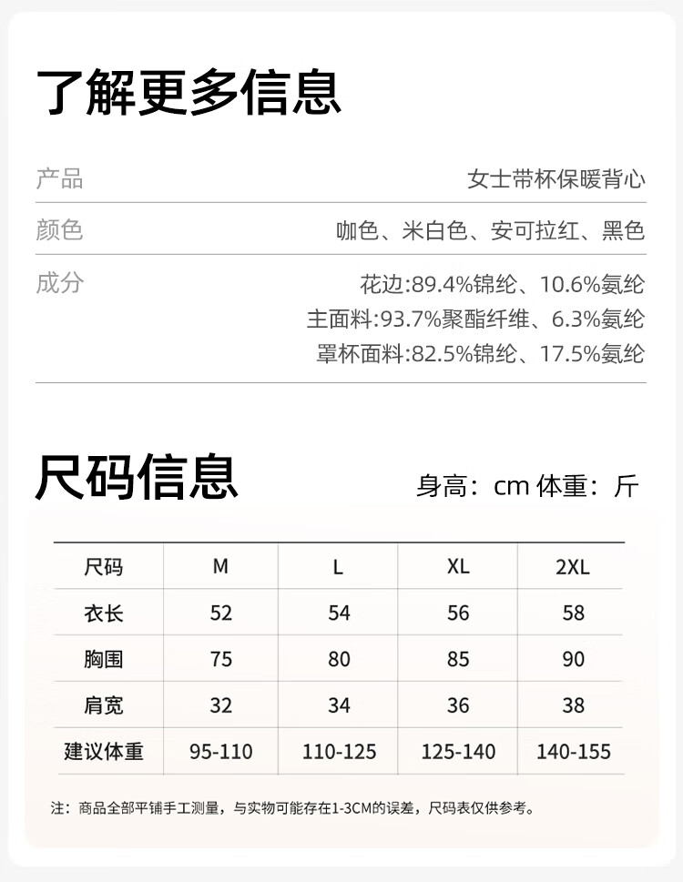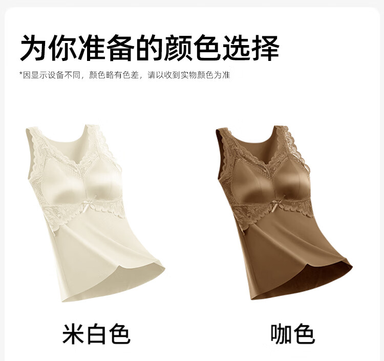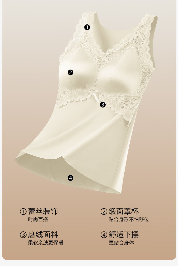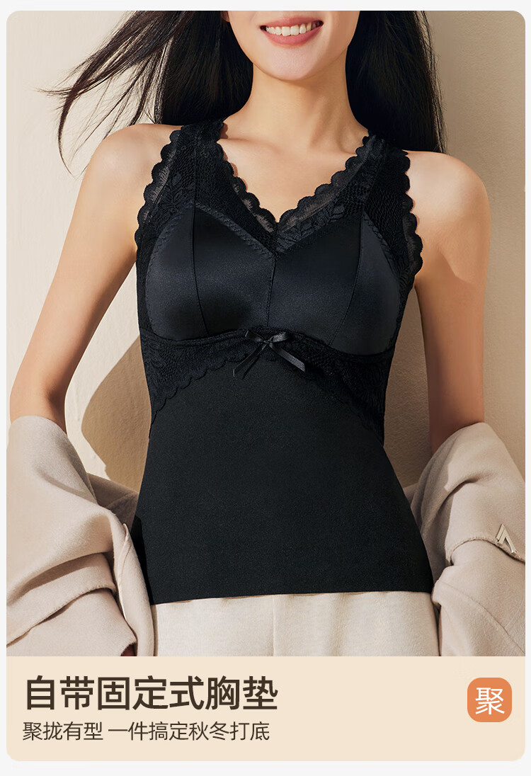 欧迪芬保暖背心女士内衣带胸垫内搭性感蕾丝打底衫秋冬免穿文胸打底白L