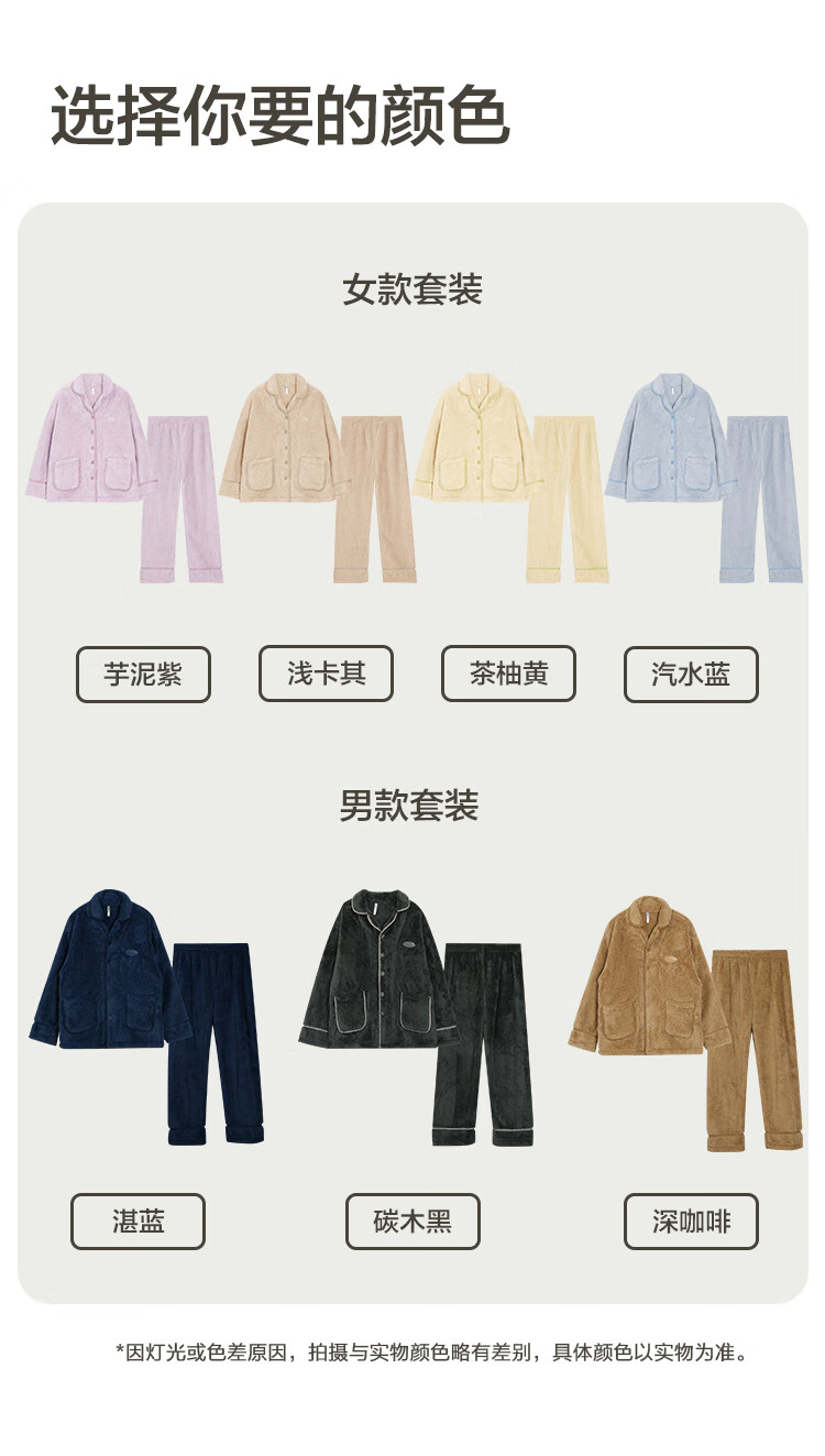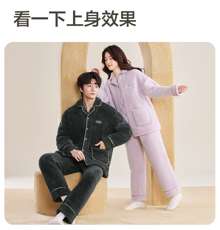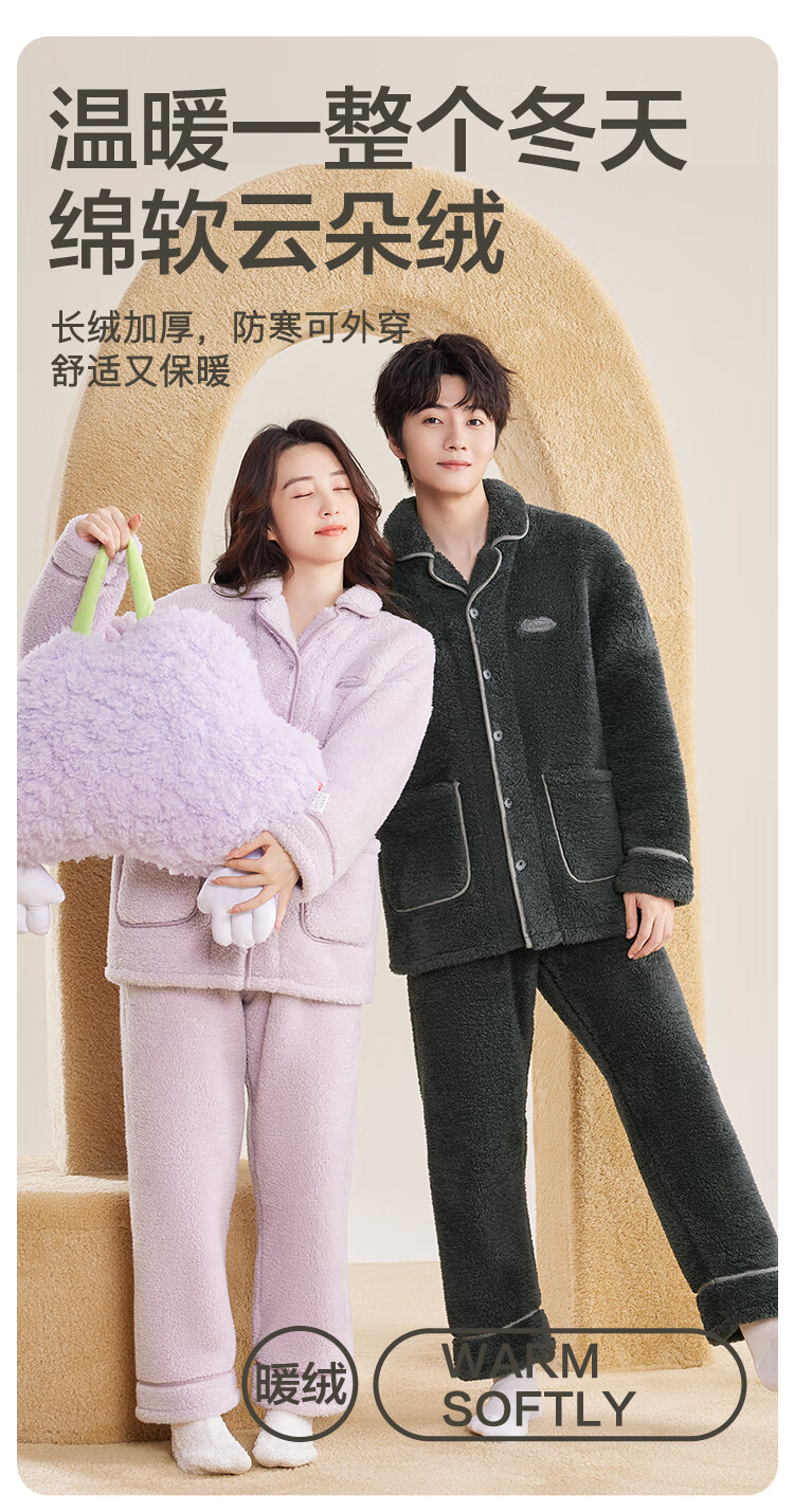 红豆居家睡衣男女士秋冬保暖牛奶绒开衫翻领加绒加厚睡衣24年冬季新品 女士芋泥紫 L 170/92A