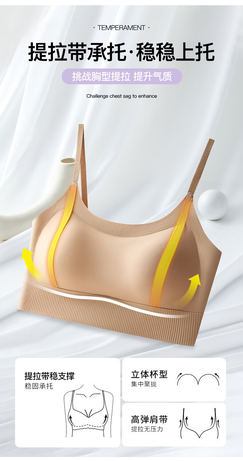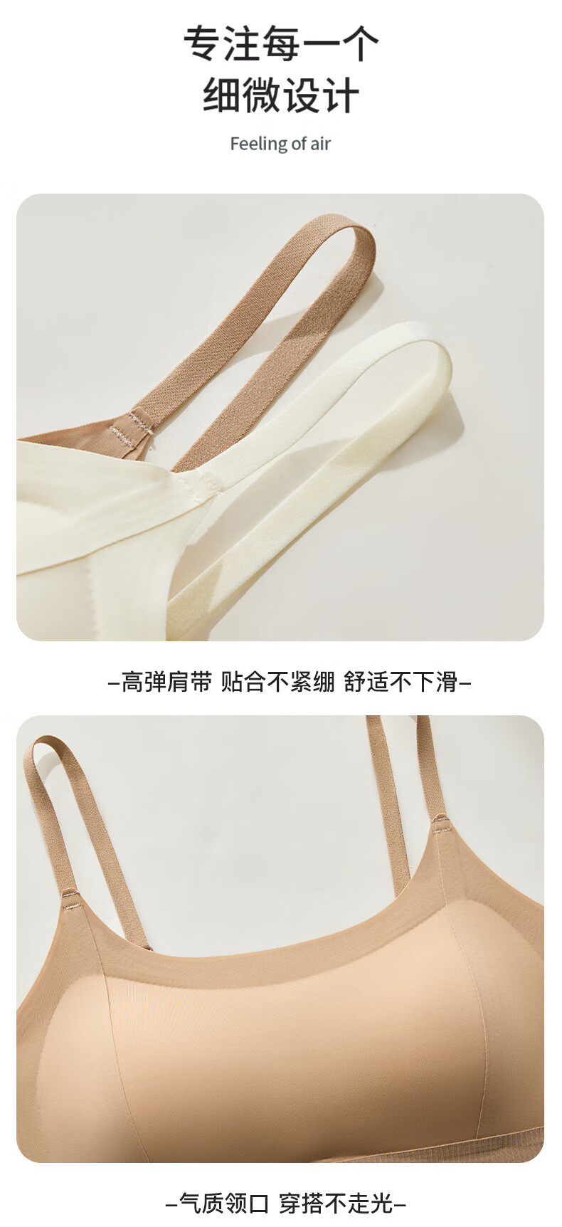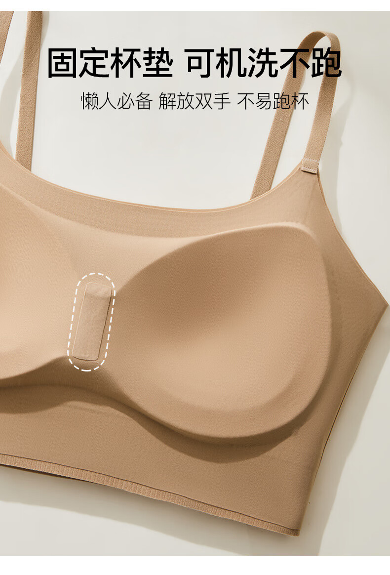 小胸加厚美背内衣女聚拢显大防走光细肩带吊带背心一体式文胸抹胸 卡其色 (单品) L 【115-130】3CM棉碗