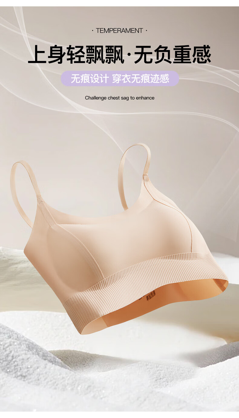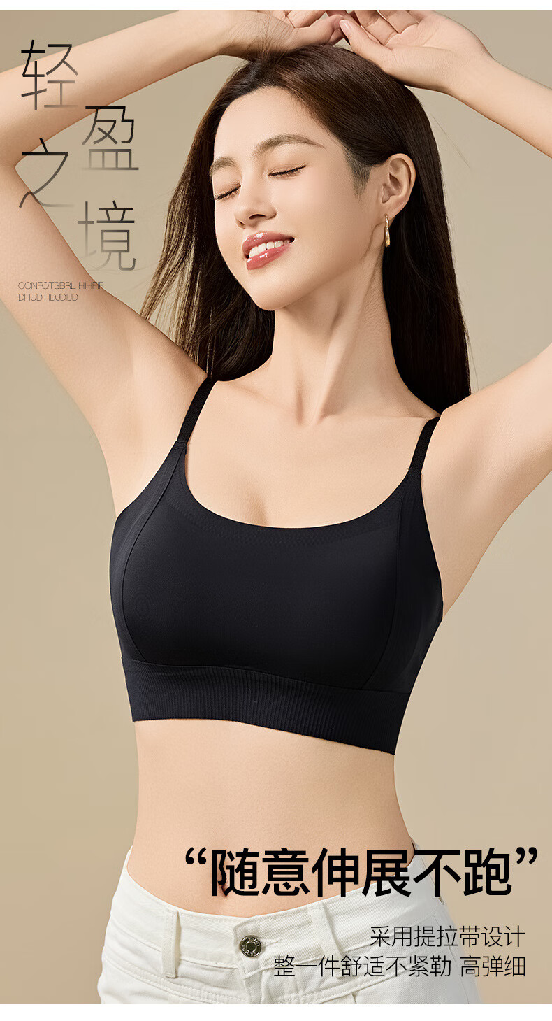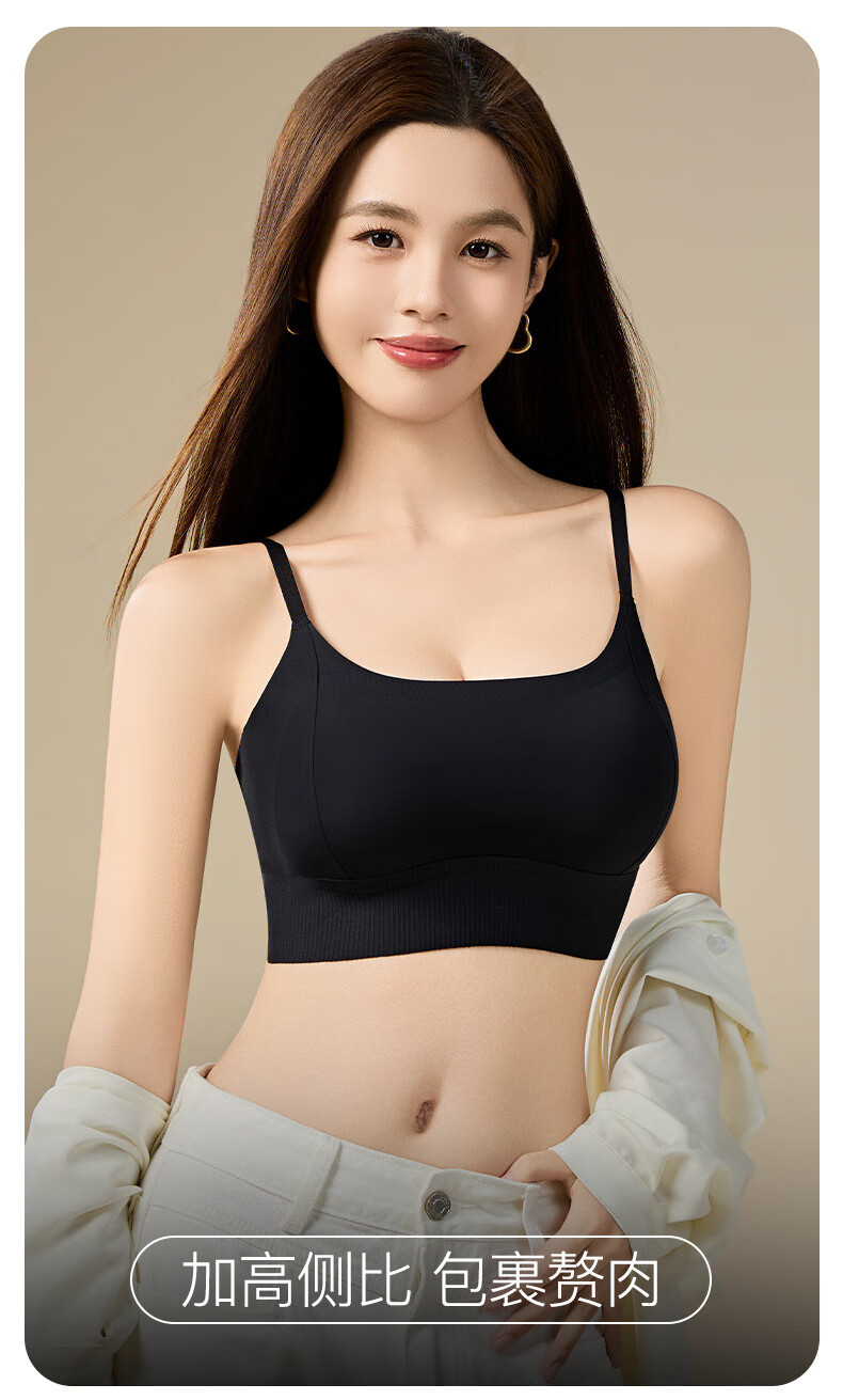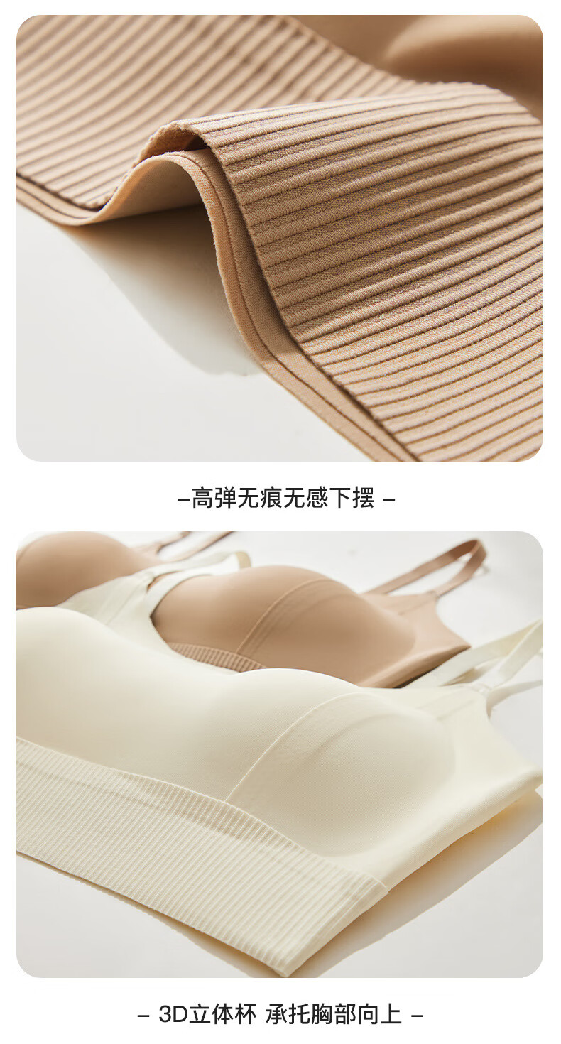 小胸加厚美背内衣女聚拢显大防走光细肩带吊带背心一体式文胸抹胸 卡其色 (单品) L 【115-130】3CM棉碗