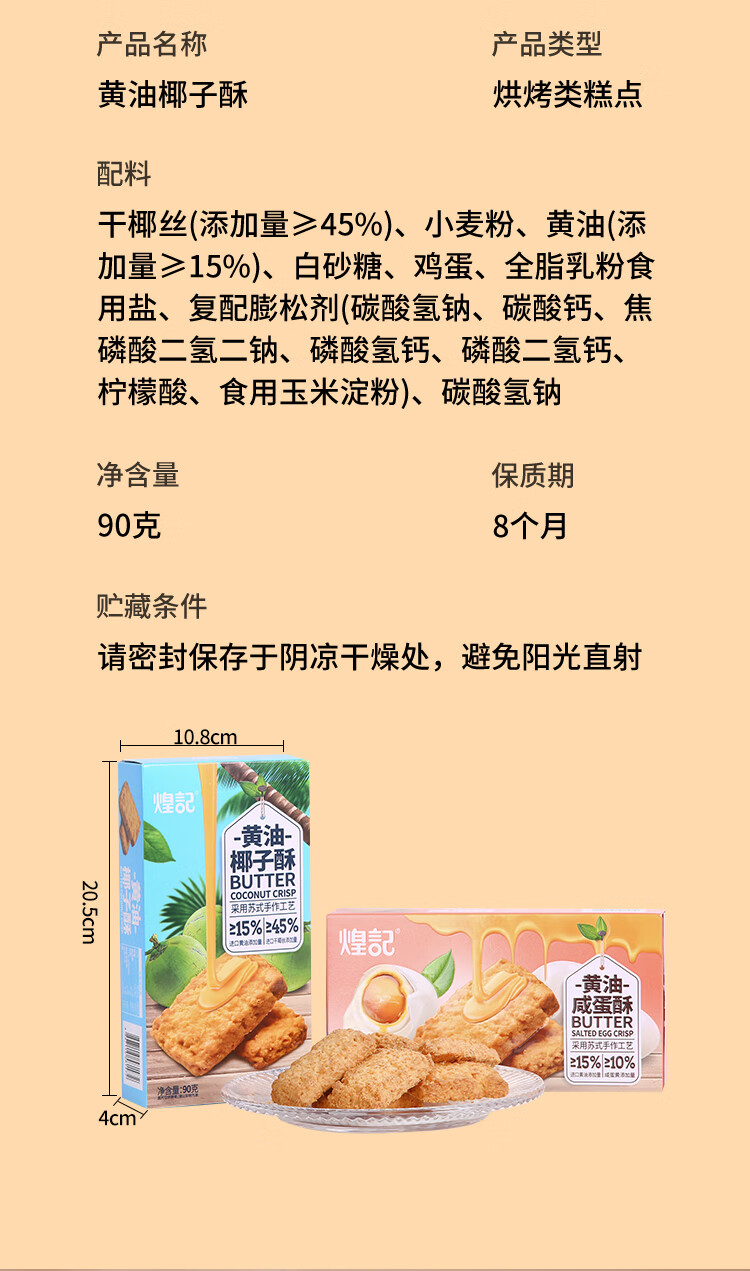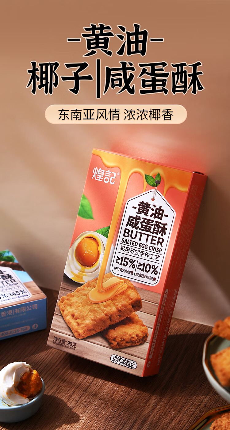煌记 苏式黄油蛋黄酥 90g/盒 曲奇饼干 椰子椰蓉点心糕点香港休闲零食