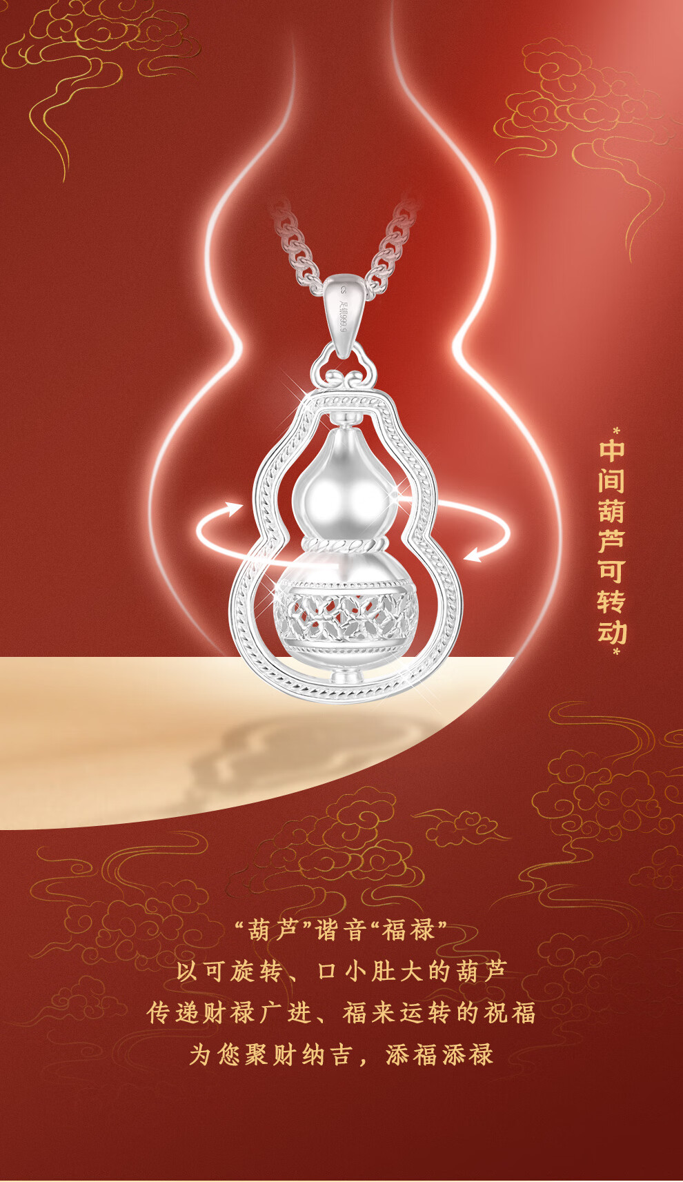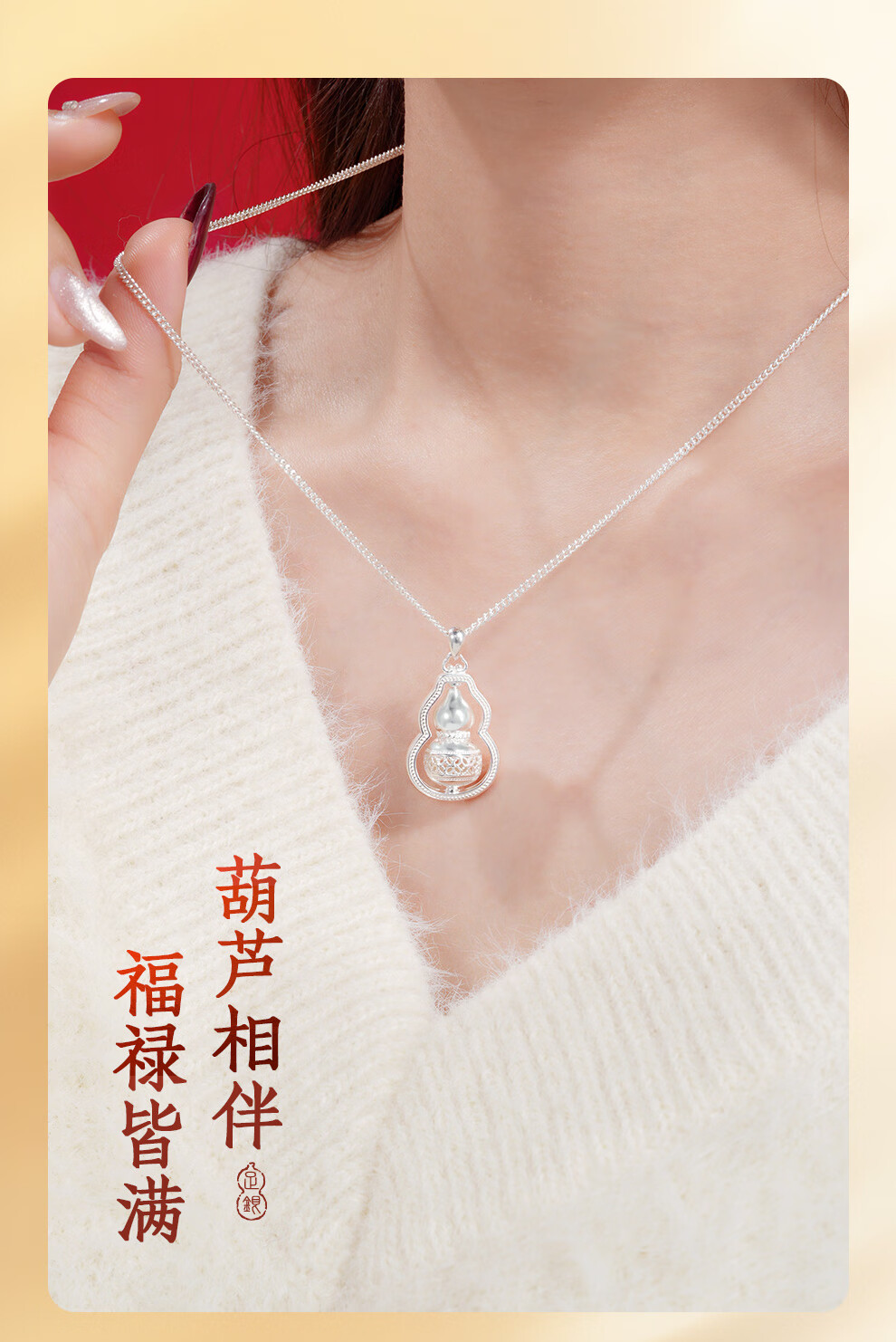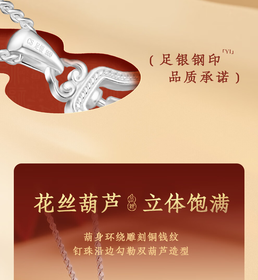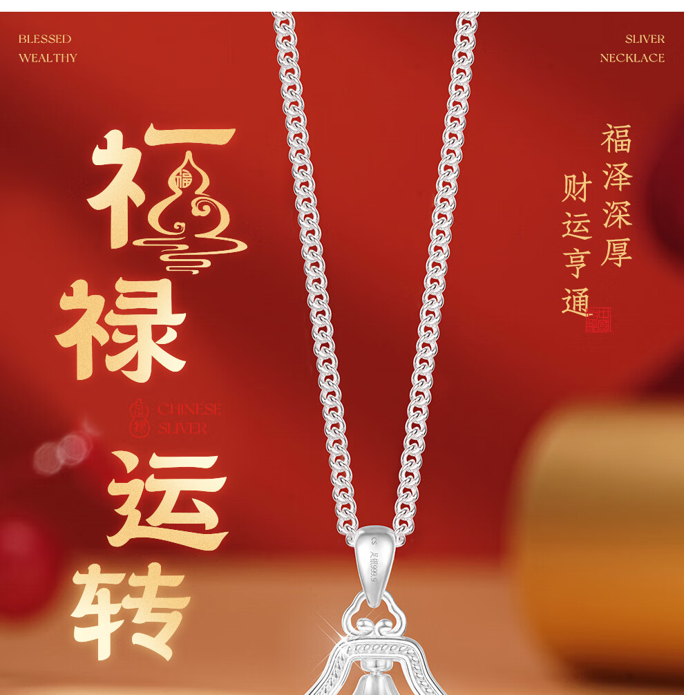 臻汇银足银999葫芦吊坠转运项链女锁骨链新年首饰生日礼物送女朋友