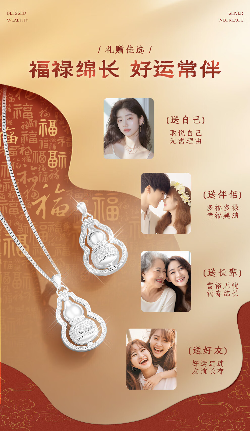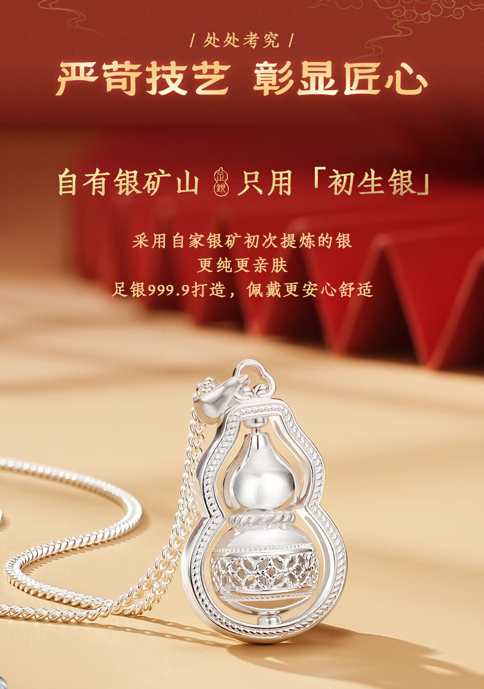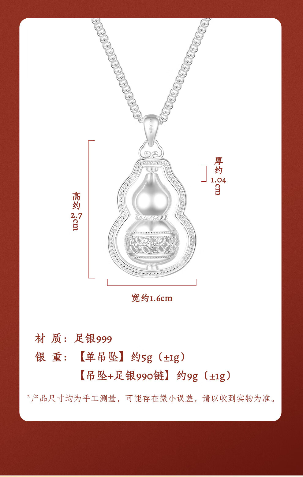 臻汇银足银999葫芦吊坠转运项链女锁骨链新年首饰生日礼物送女朋友