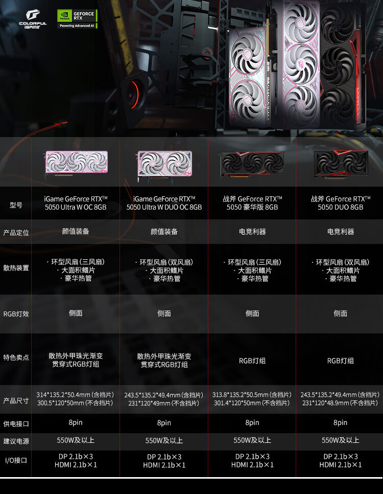 七彩虹(Colorful)战斧 GeForce RTX 5050 DUO 8GB DLSS 4 电竞光追游戏设计电脑显卡