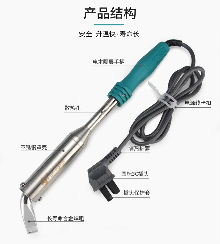 久聚和实益外热式大功率电烙铁工业级电焊笔300w尖弯扁头80w100w电洛铁 80W尖头标配