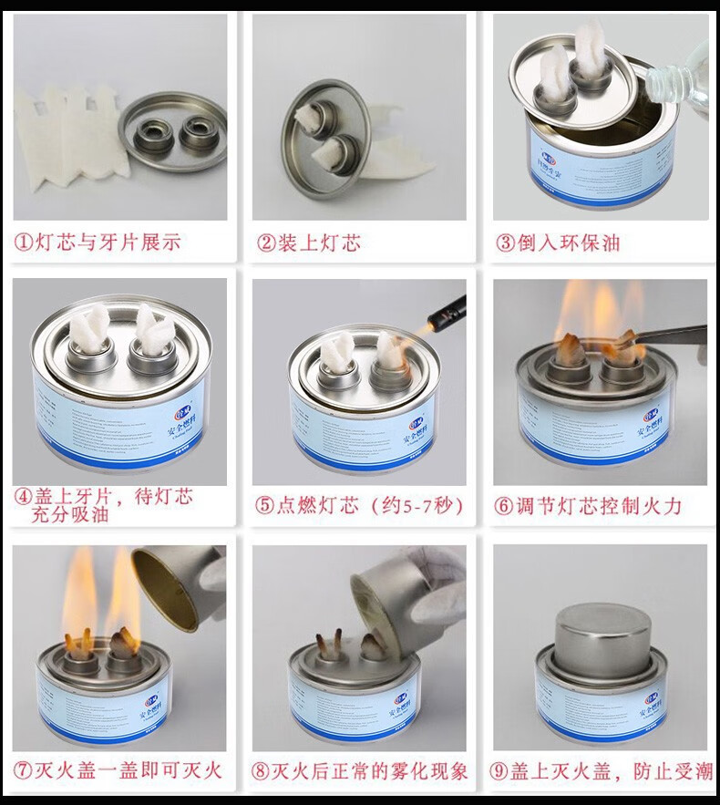 福官外卖酒精炉小火锅铁板烧烤燃料罐植物油环保油矿物油罐煮茶燃油罐 石棉灯芯20条 1cm
