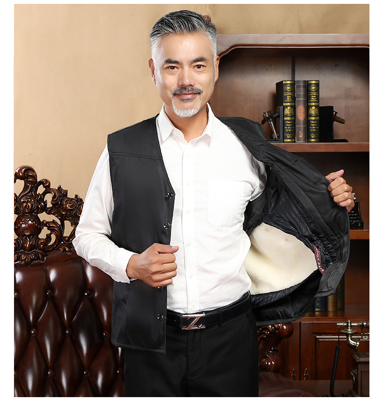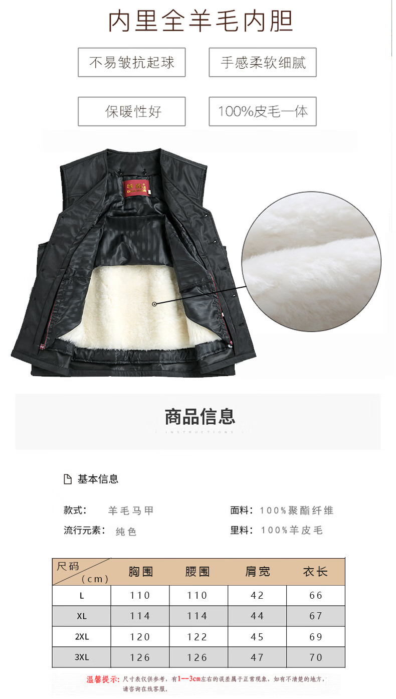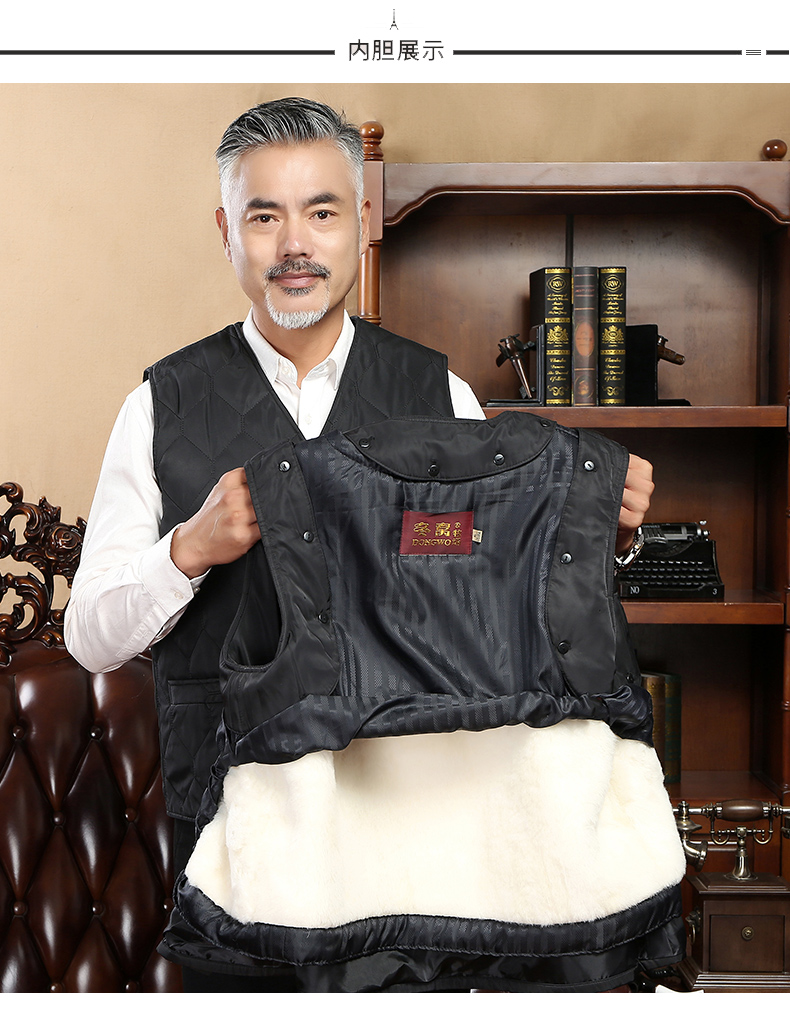 冬窝中老年皮毛一体马甲滩羊毛羊皮背心保暖加厚坎肩大码冬季男士 黑色 XL