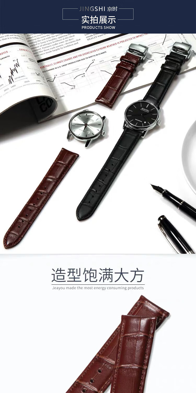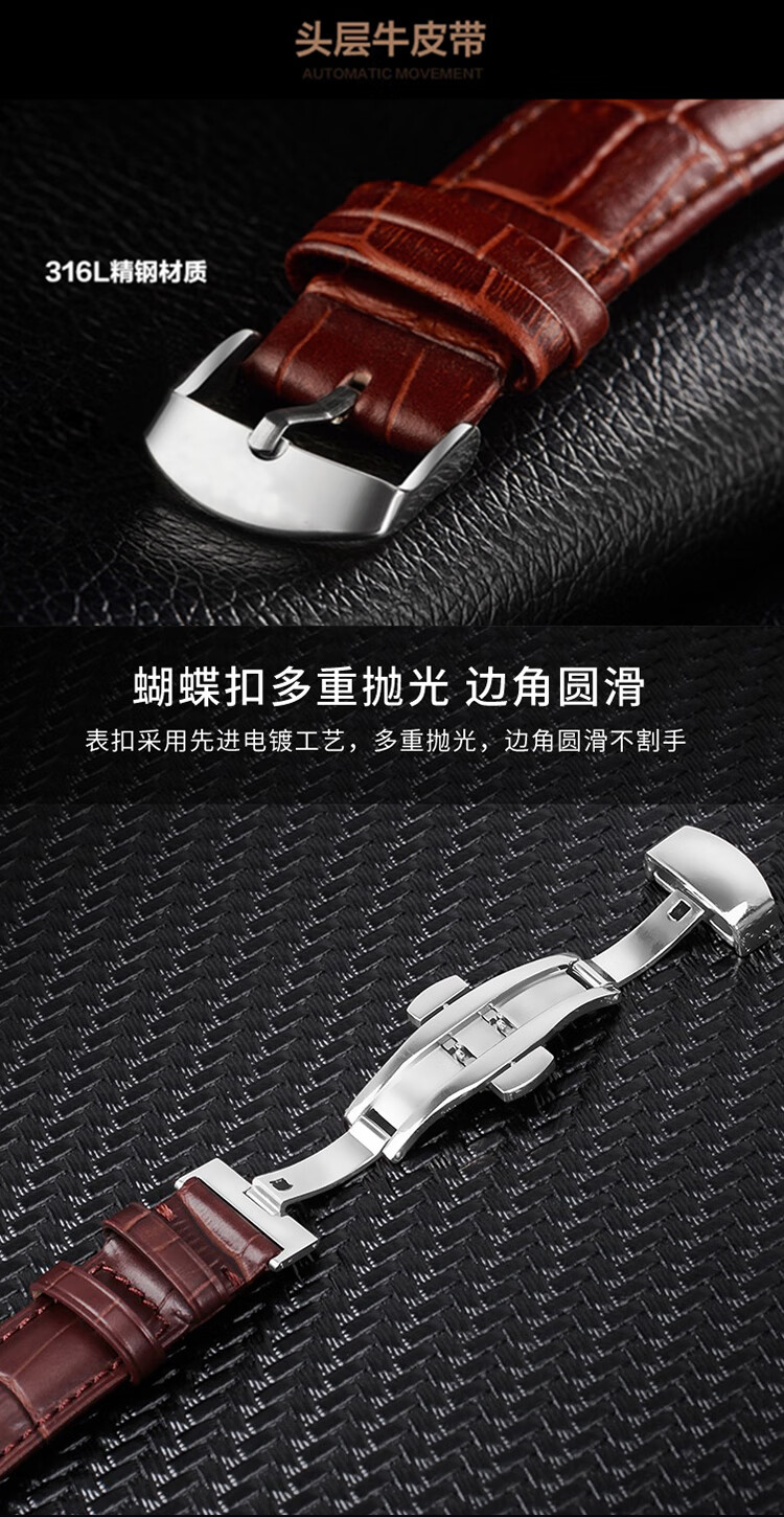 碧允真牛皮表带男女通用手表带蝴蝶扣配件头层皮带针扣表链品牌dw代用 黑色竹节纹#亮色蝴蝶扣 12mm