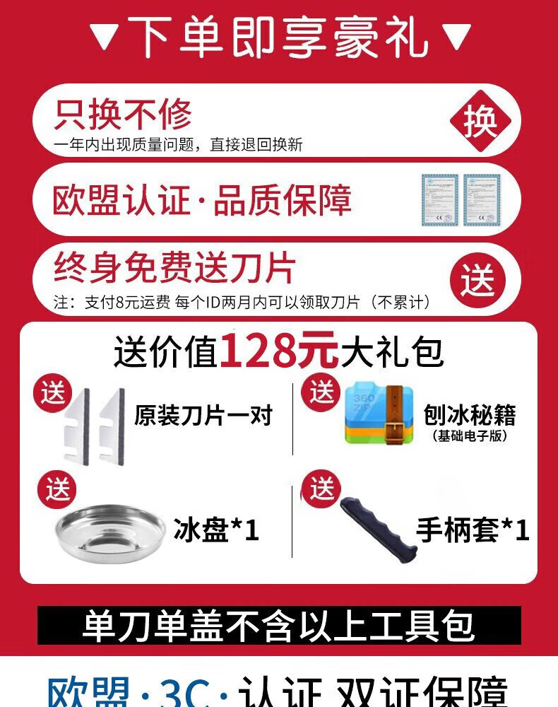 京严刨冰机电动碎冰机商用全自动沙冰机家用破冰机摆摊小型手动打冰机 【八刀】粗细可调/超速碎冰