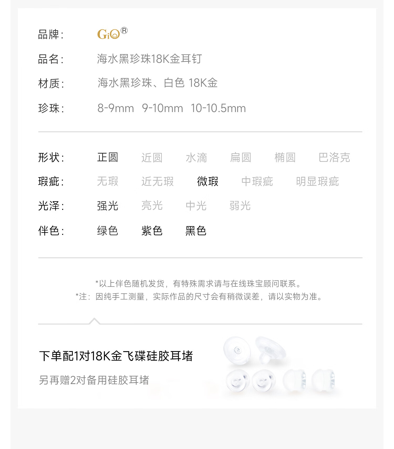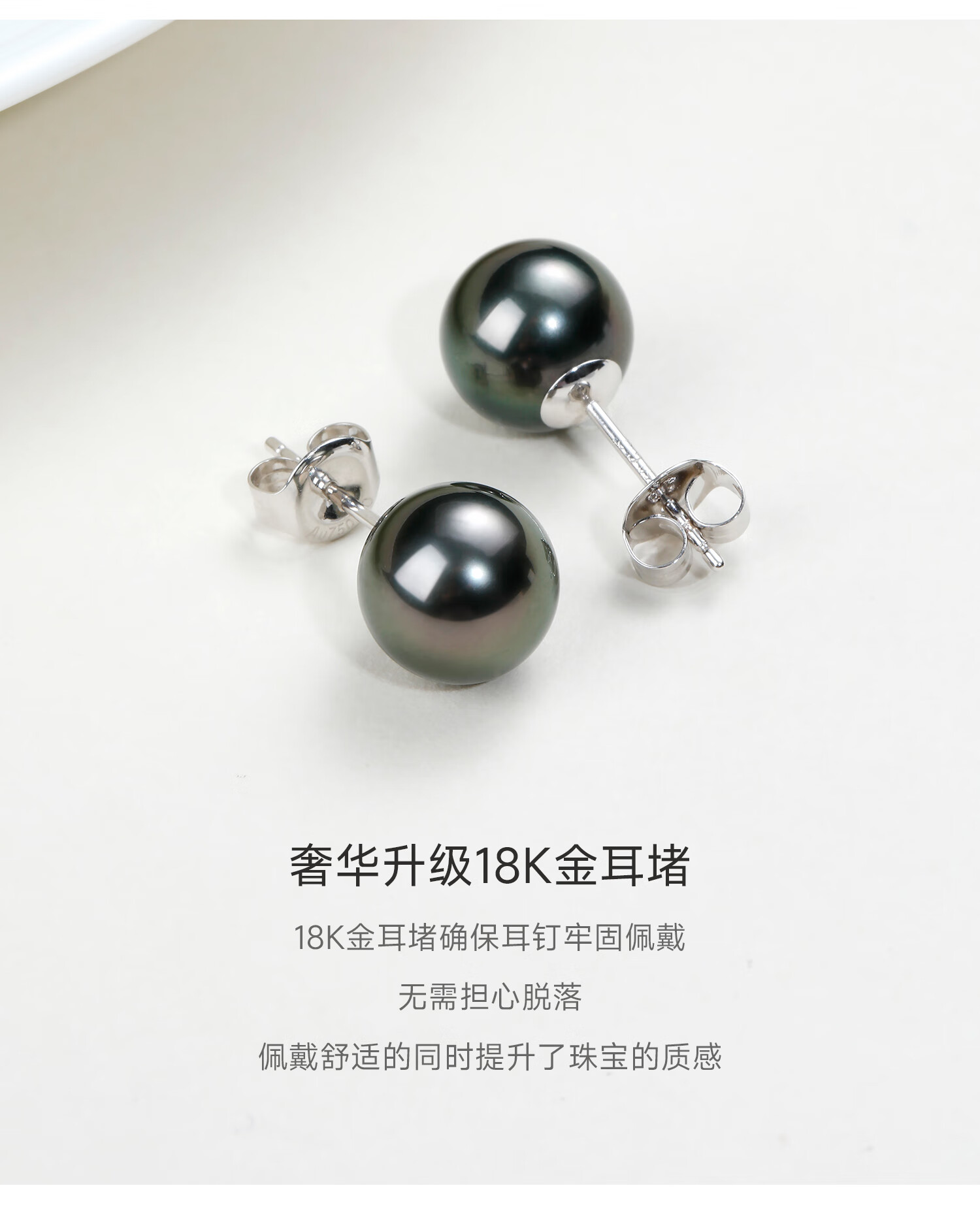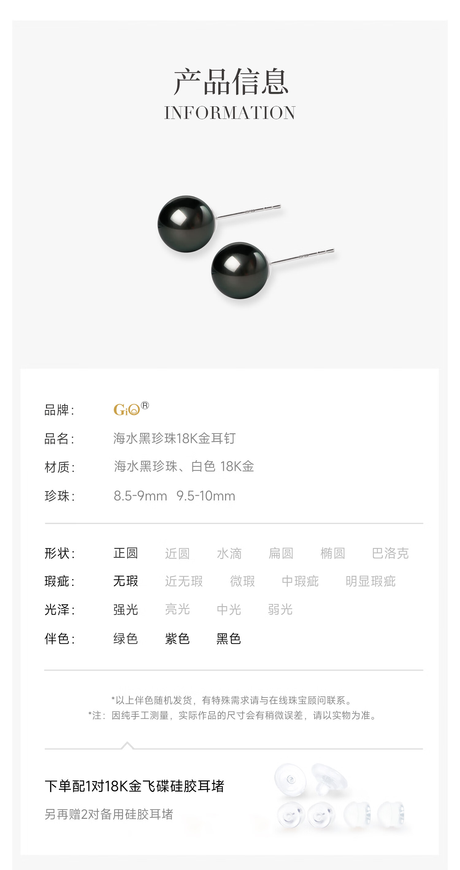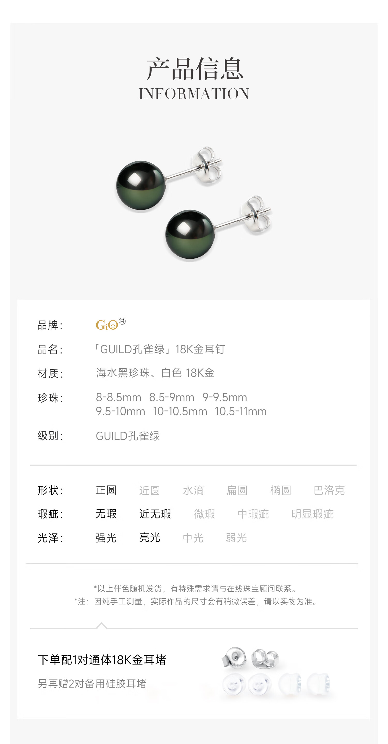 GiO珠宝 大溪地黑珍珠耳钉18K金耳饰GUILD孔雀绿新年礼物送女友 18K金 8-9mm微瑕