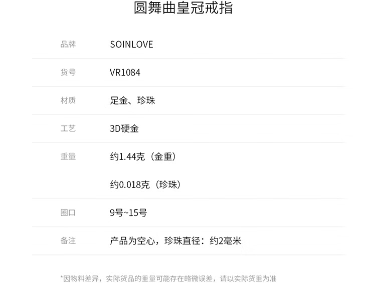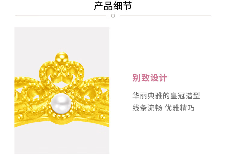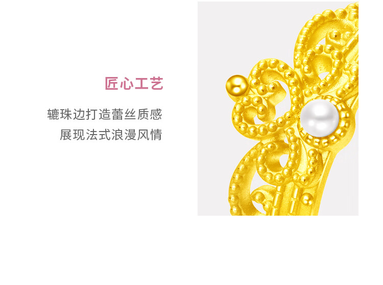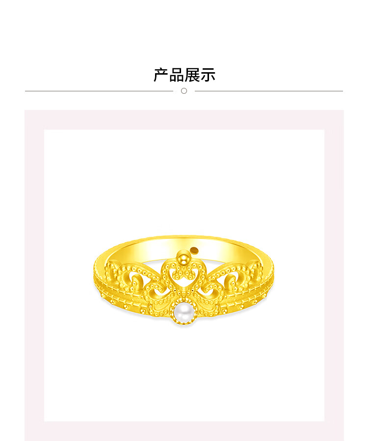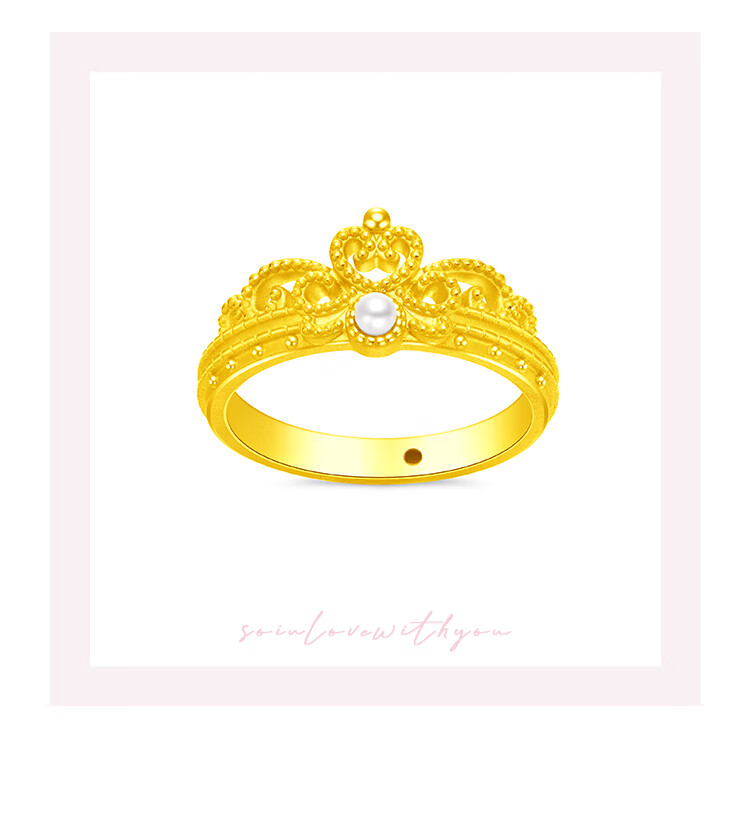 周大福SOINLOVE 宝藏女孩圆舞曲皇冠足金黄金珍珠戒指 VR1084
