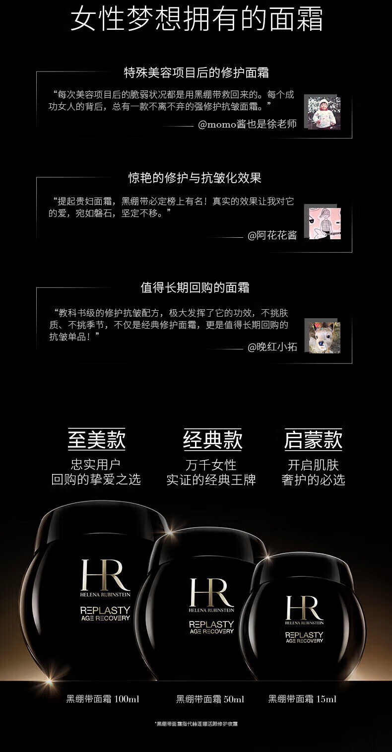 赫莲娜(HELENA RUBINSTEIN)HR黑白绷带面霜小样5ml保湿修护抗皱护肤品化妆品生日礼物 多种肤质黑绷带1.5ml 10片装