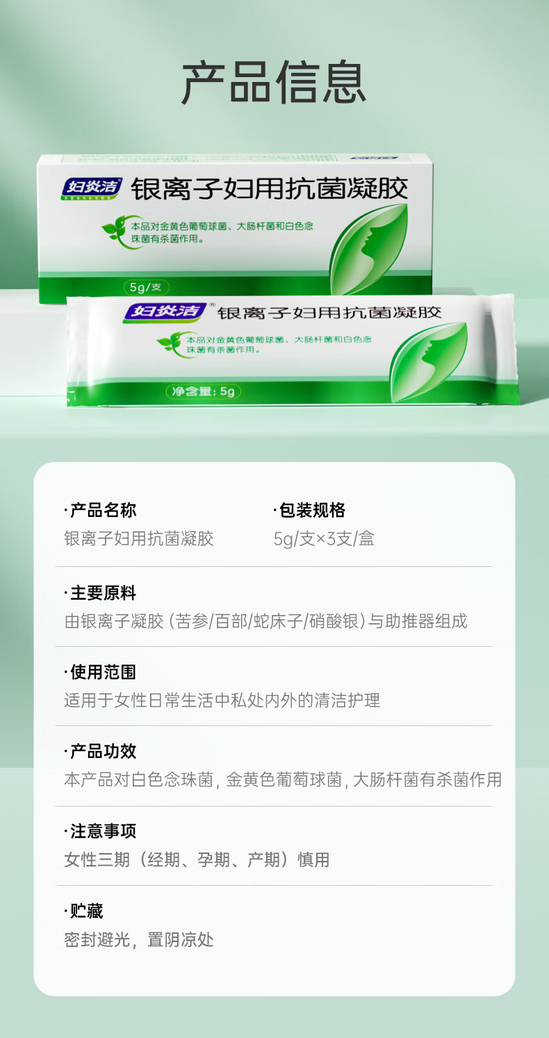 妇炎洁 银离子抗菌凝胶妇用深度抑菌凝胶女性私处护理3支/盒*3盒