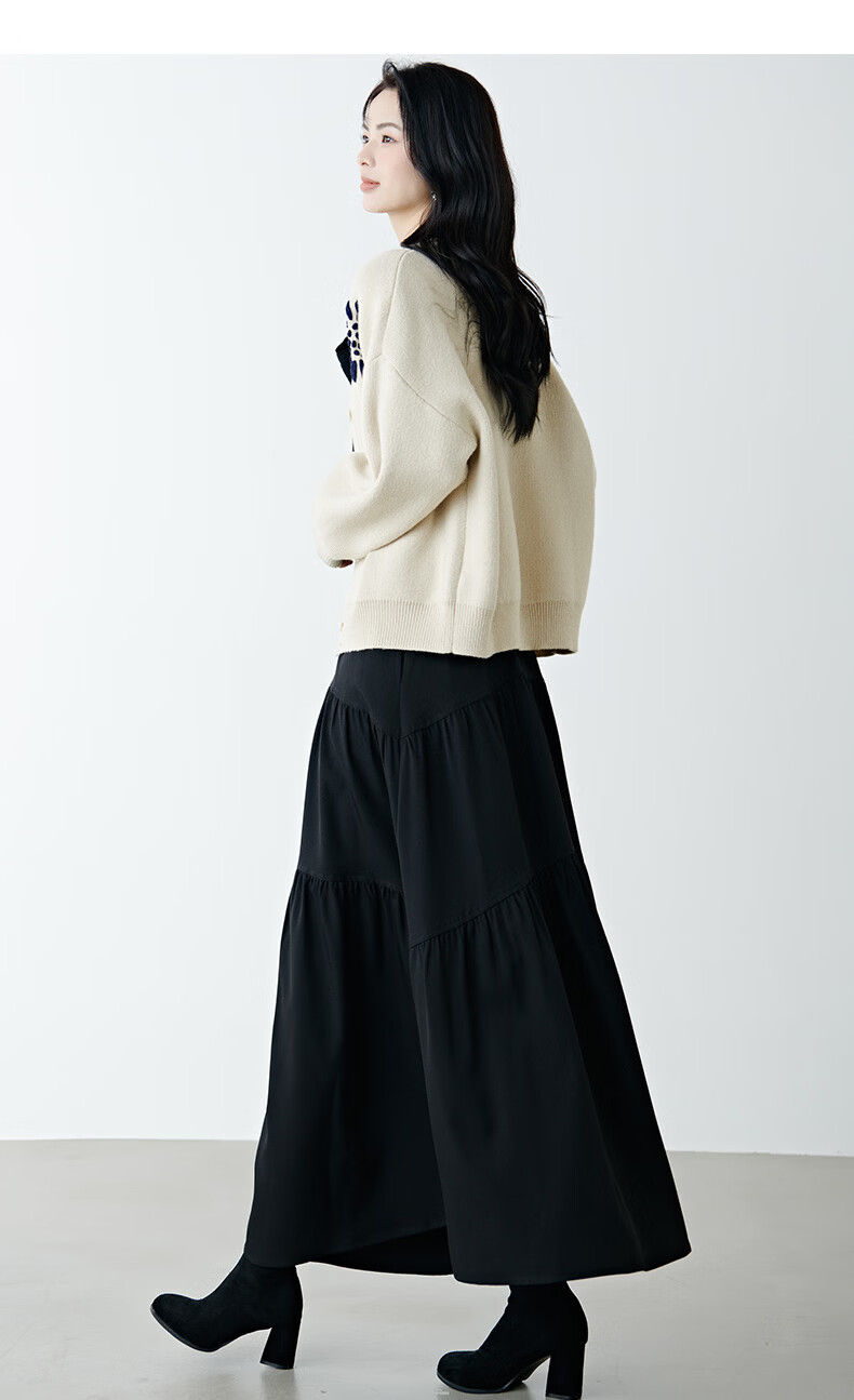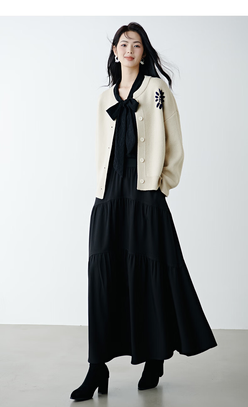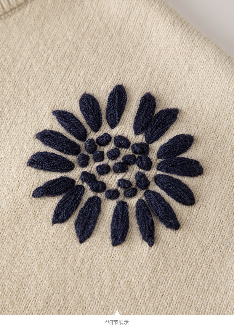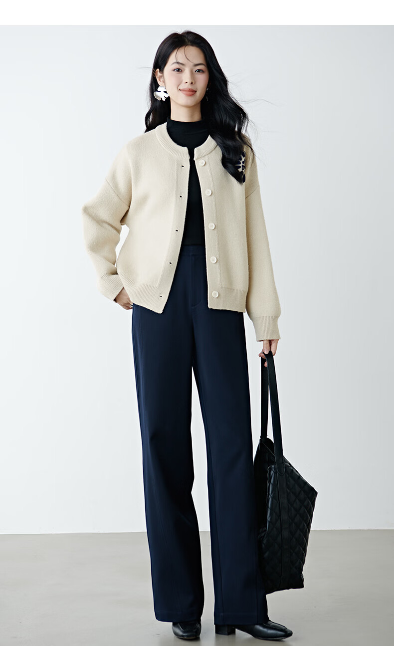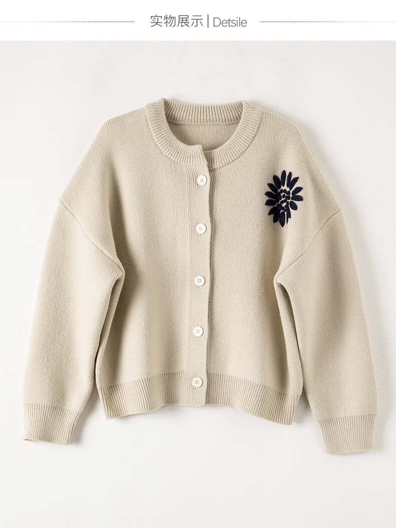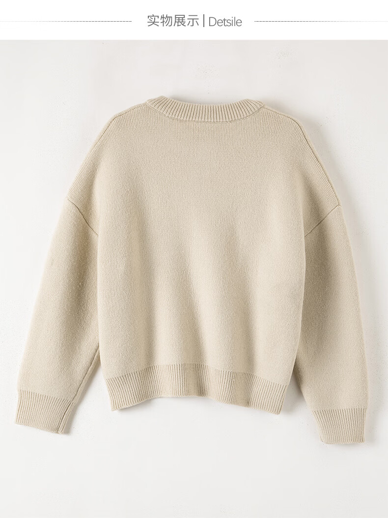 晚白2025年冬款时尚刺绣宽松圆领毛衣柔软舒适休闲针织开衫女 杏色 L