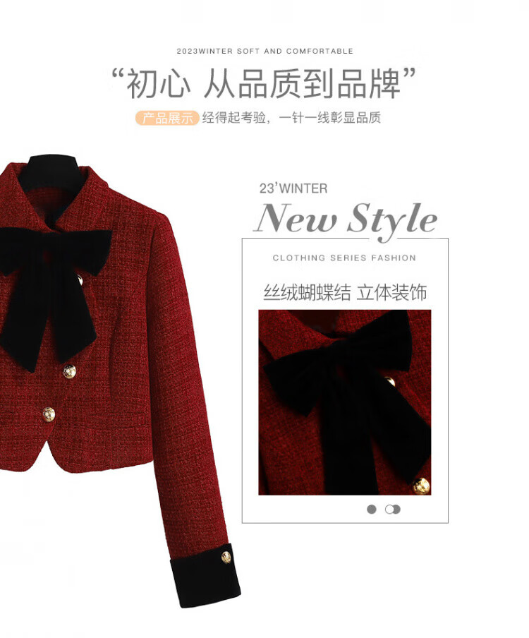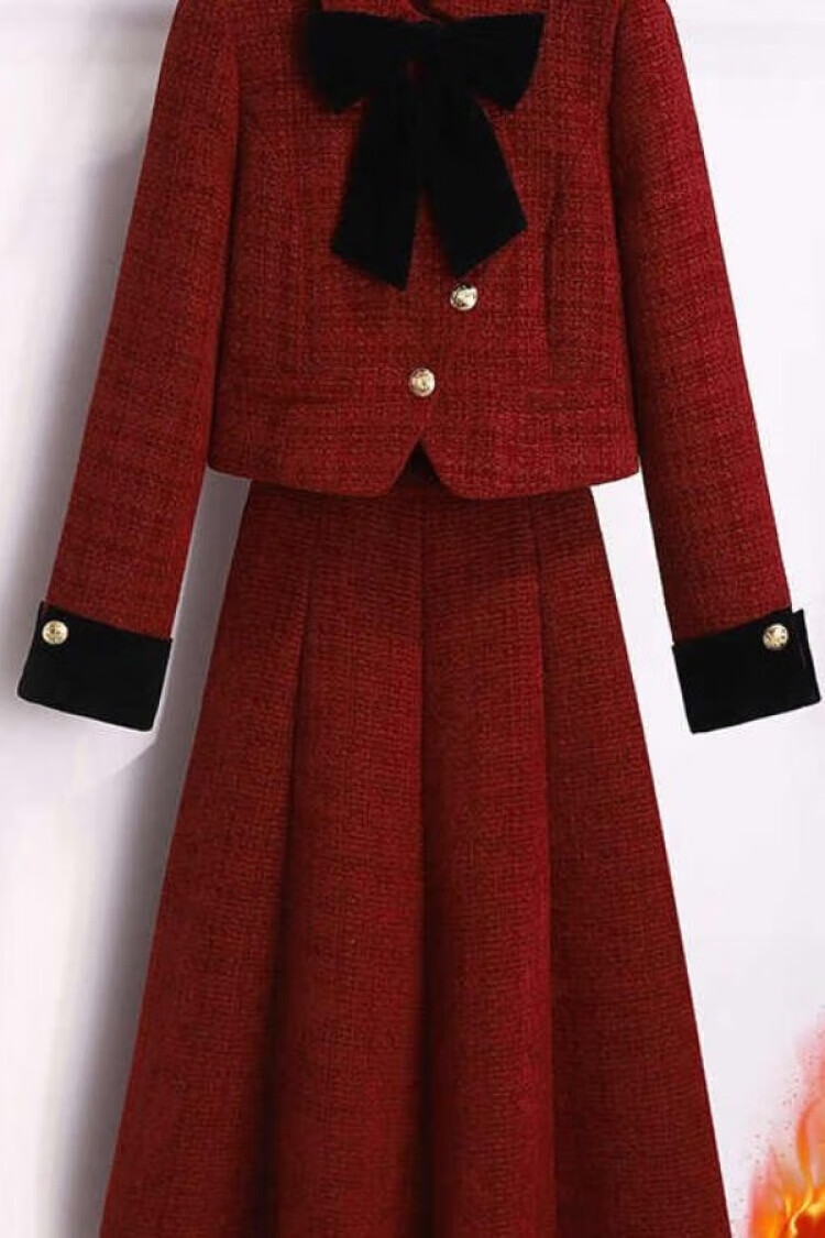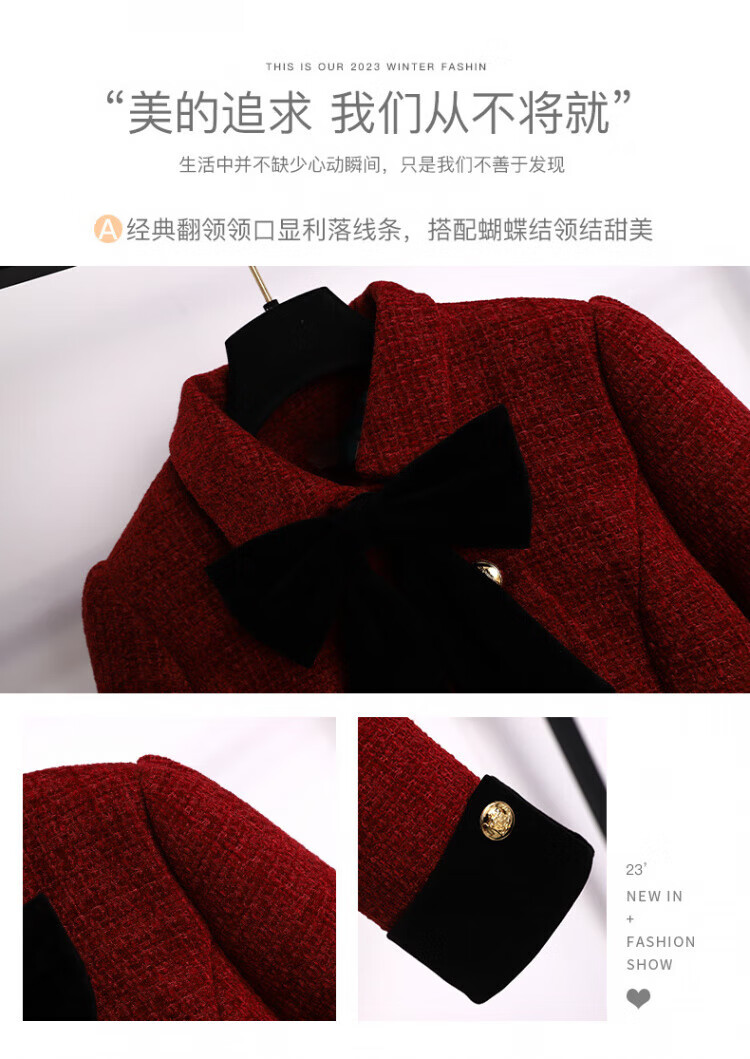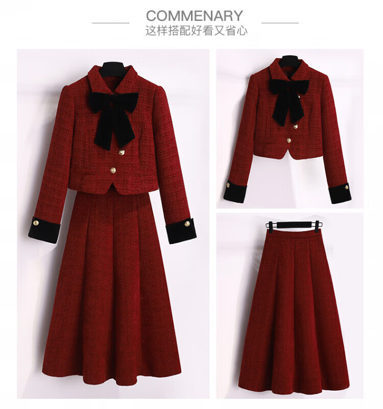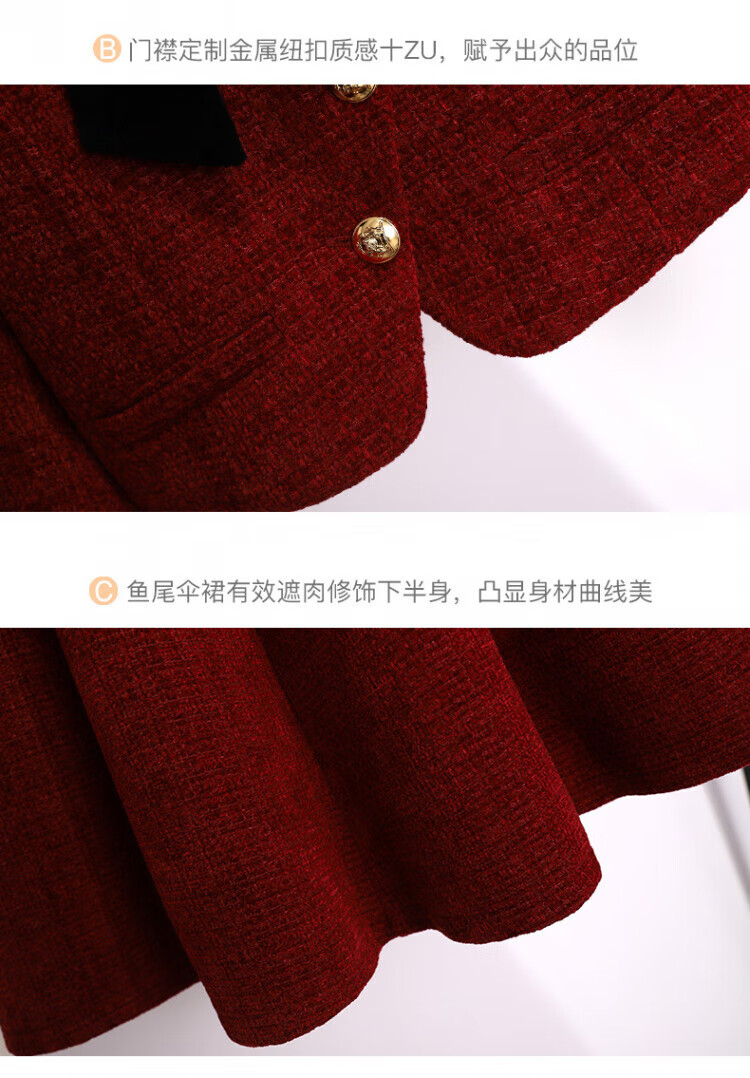 皮尔卡丹新年小香风连衣裙女秋冬季2025新款订婚新娘敬酒礼服妈妈两件套装 红色 加棉套装 3XL 【建议156-175斤】