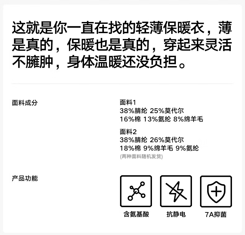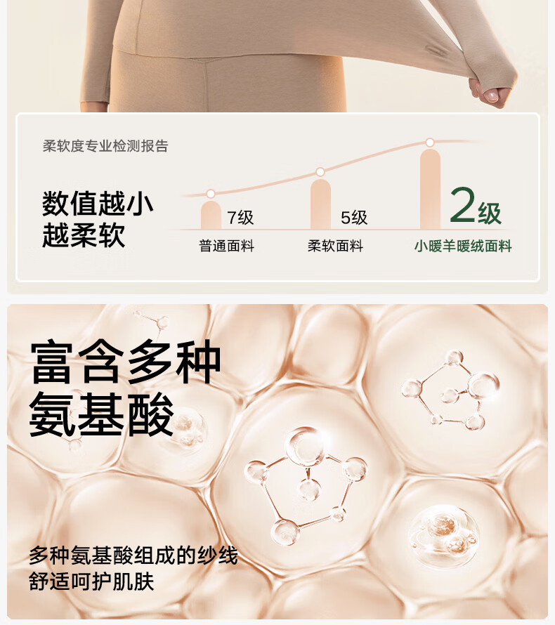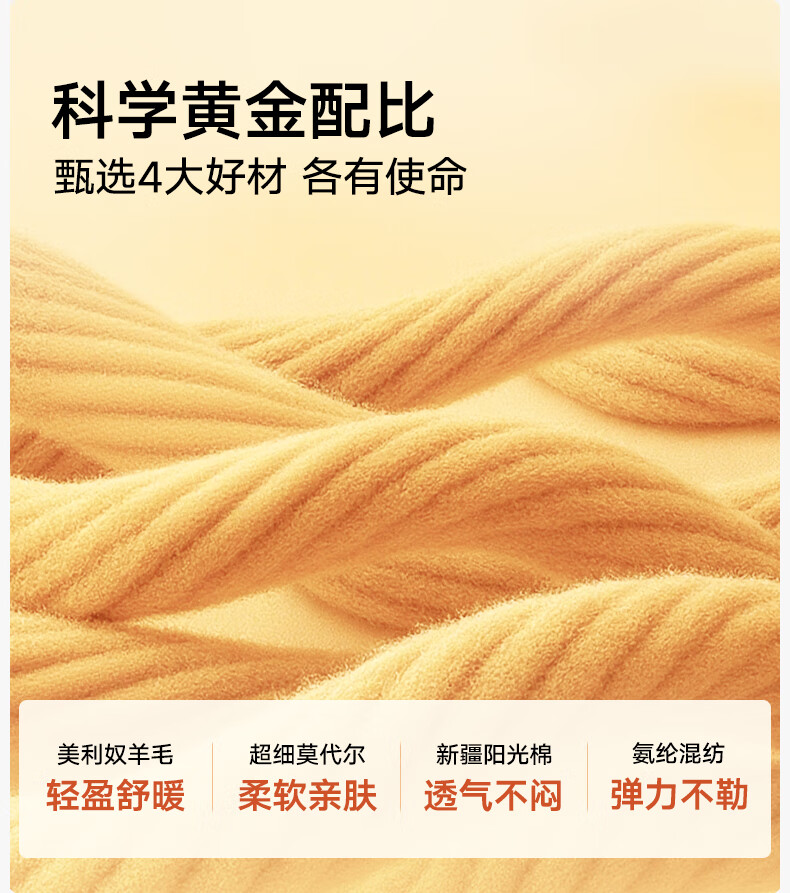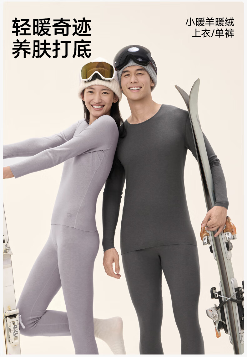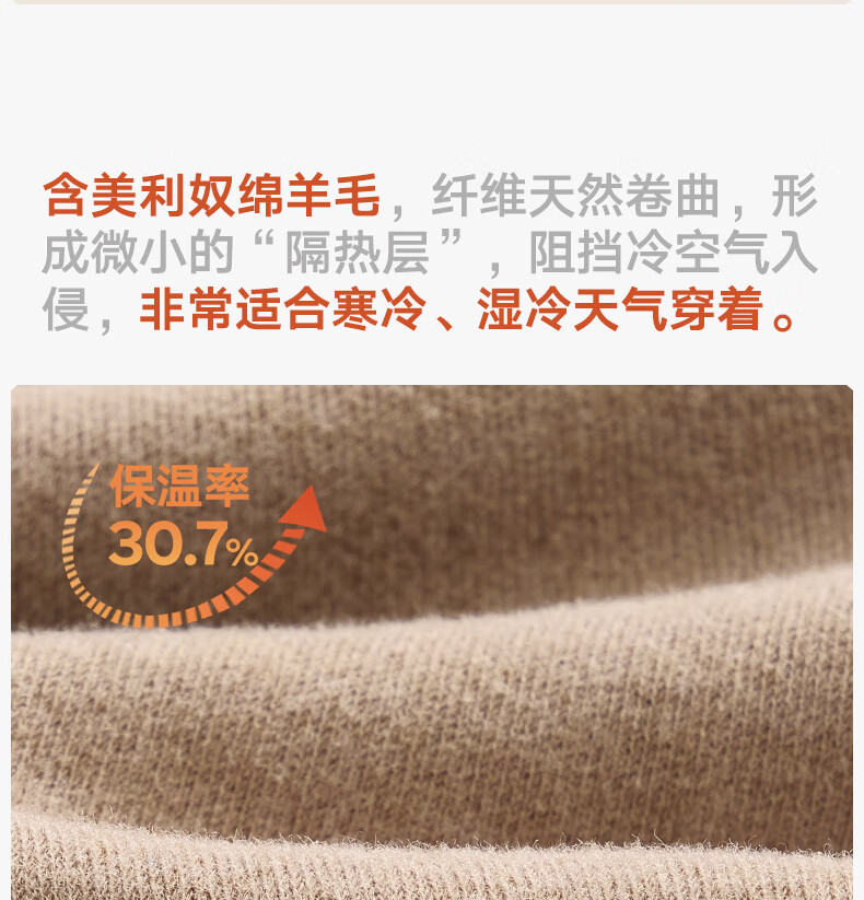 松山棉店小暖羊保暖衣男女士秋冬轻暖秋衣秋裤含羊毛7A抑菌抗静电男士单裤