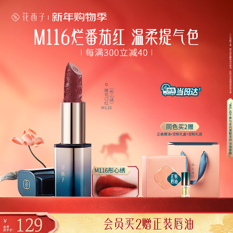 花西子雕花口红M116彤心绣唇膏滋润不掉色显白提气色送女友礼物