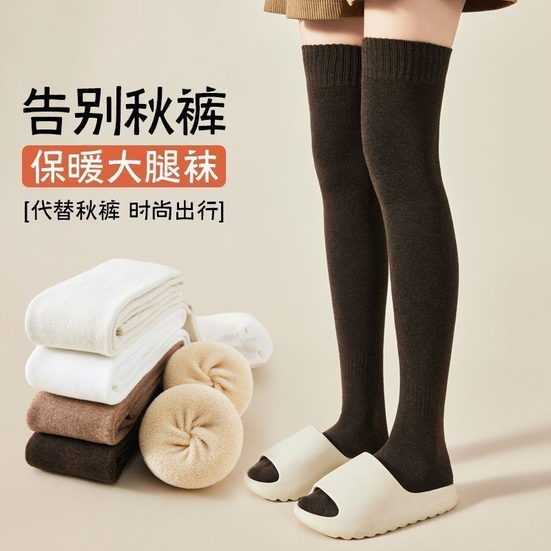 【大腿过膝袜】女秋冬季加厚加绒高筒袜长筒袜百搭堆堆袜冬季保暖 随机- 1双