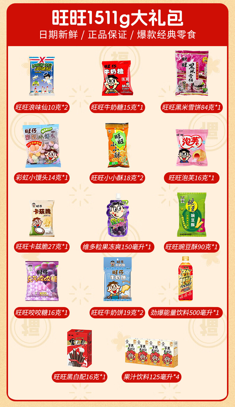 旺旺大礼包追剧休闲零食年货礼盒团购零食大礼包送女友1511g