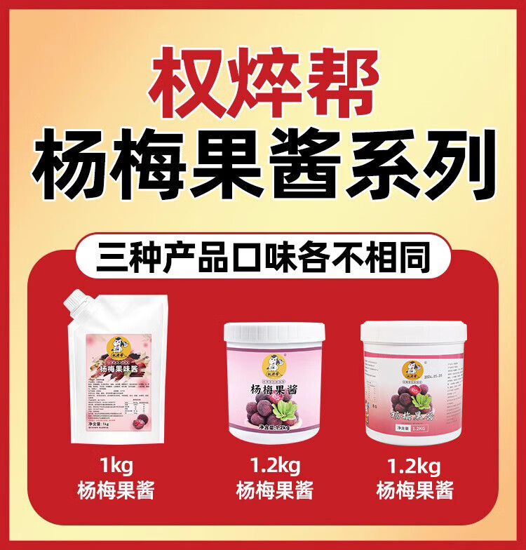 权焠帮杨梅果酱1kg权焠帮新鲜浓缩带果肉摆摊冰粉冰汤圆奶原装商用烘焙 【品牌连锁】杨梅果酱1kg