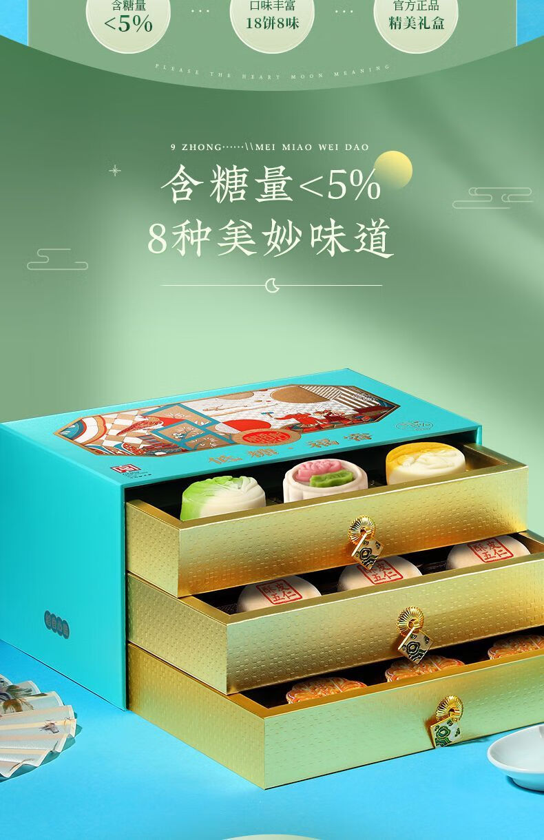 稻香村糖醇月饼礼盒糖醇禧月无蔗糖北京糖尿人专用食品 :月饼礼盒450g(9饼4味)