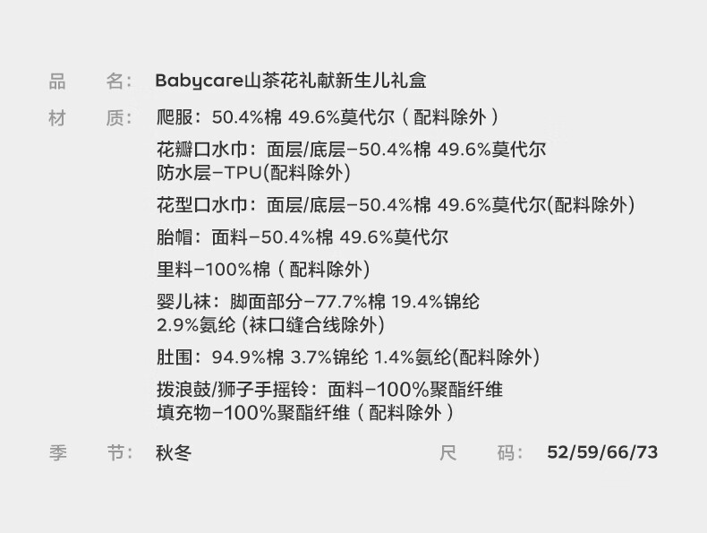 babycare山茶花礼献新生儿见面礼盒初生婴儿用品满月礼物山茶花新年红59cm