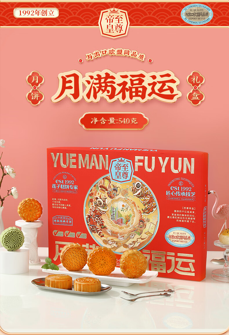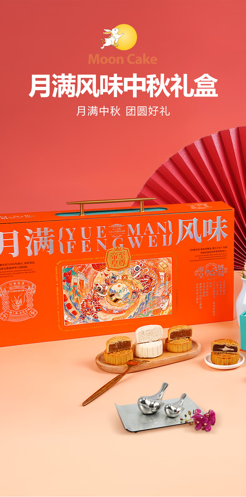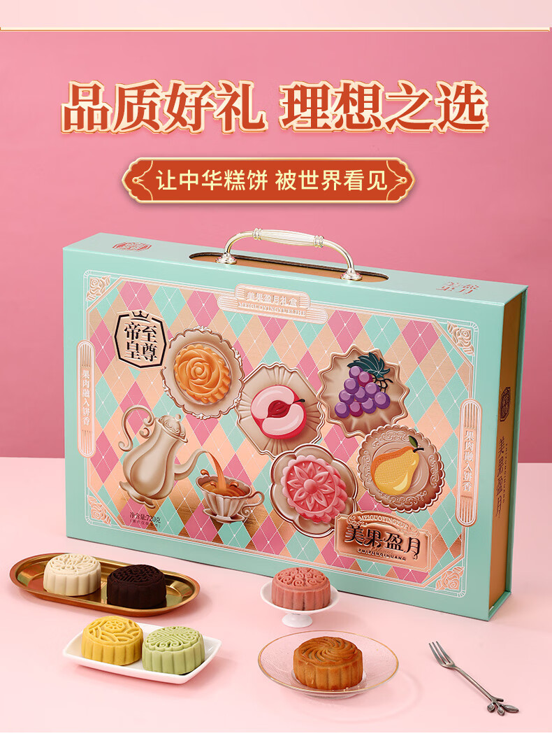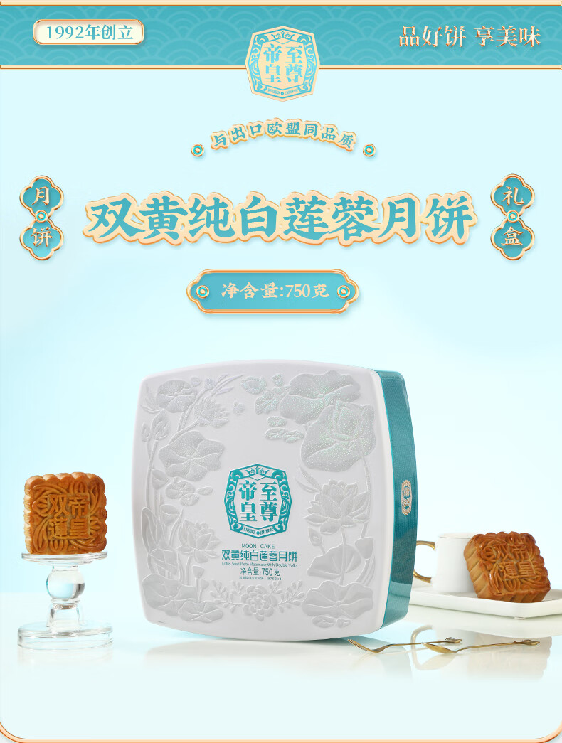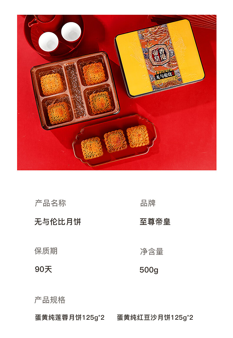 帝皇月饼礼盒 中山广式口味双黄白莲蓉月饼 中秋节客户送礼团购 月来越好礼盒420g