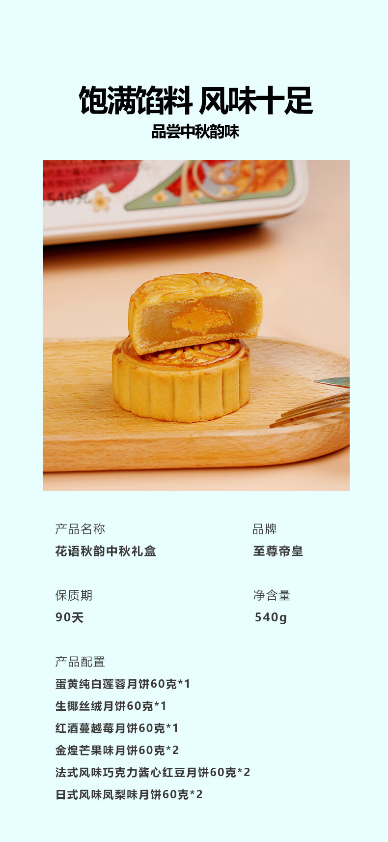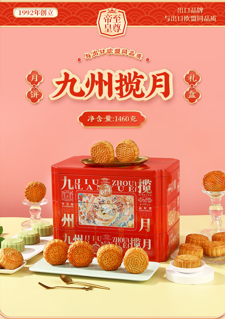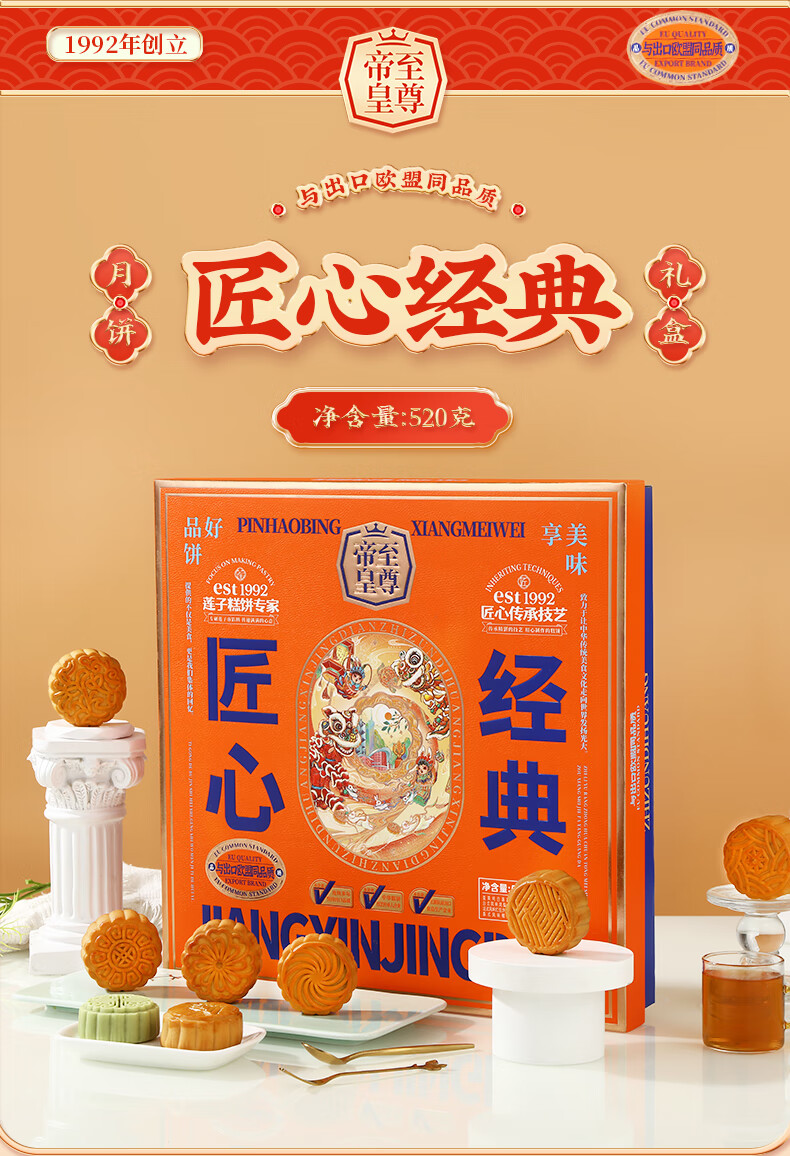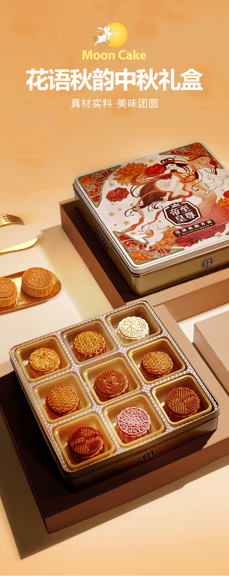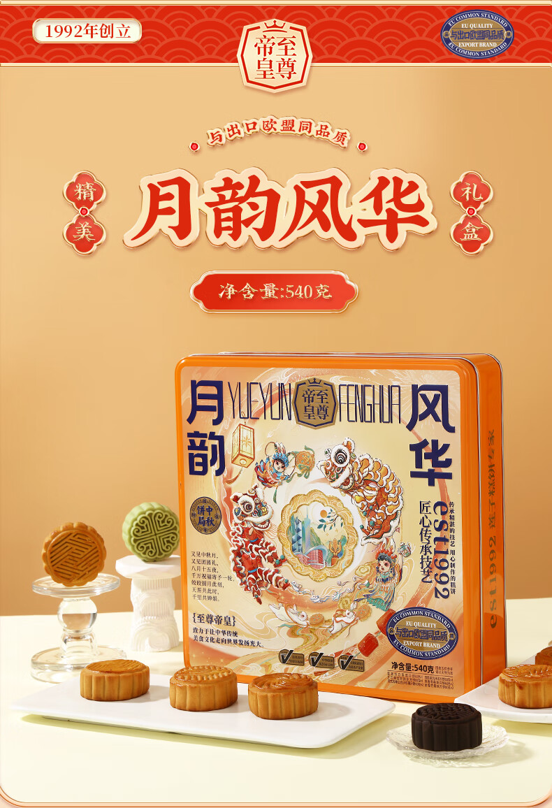 帝皇月饼礼盒 中山广式口味双黄白莲蓉月饼 中秋节客户送礼团购 月来越好礼盒420g