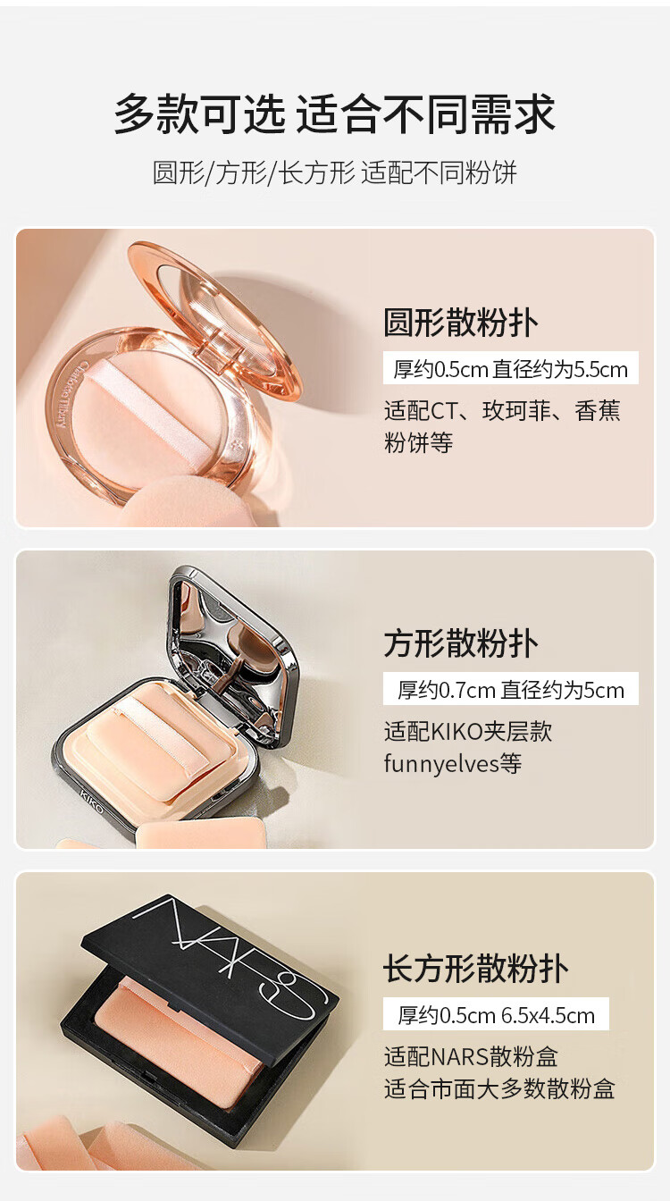 优家(UPLUS)双面植绒散粉扑粉饼粉扑(薄款长方形)2个替换定妆化妆粉扑