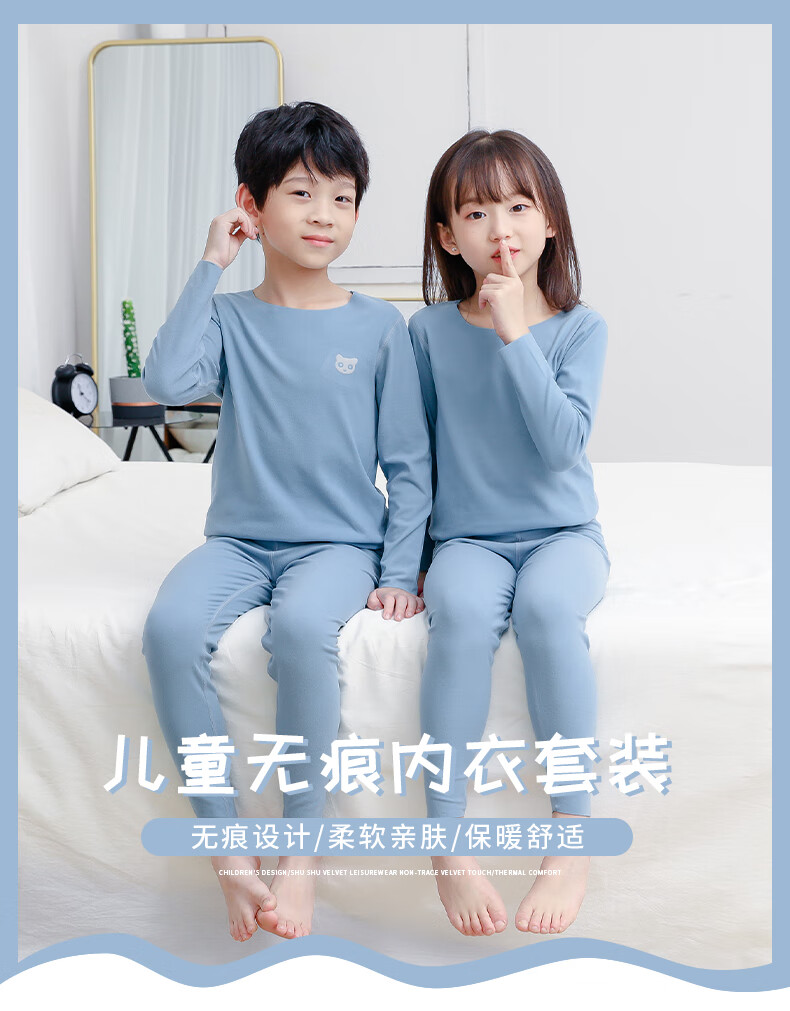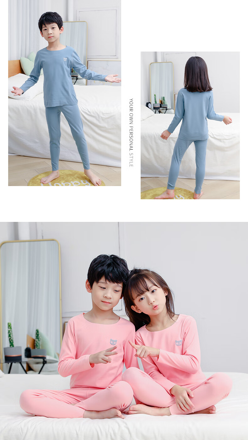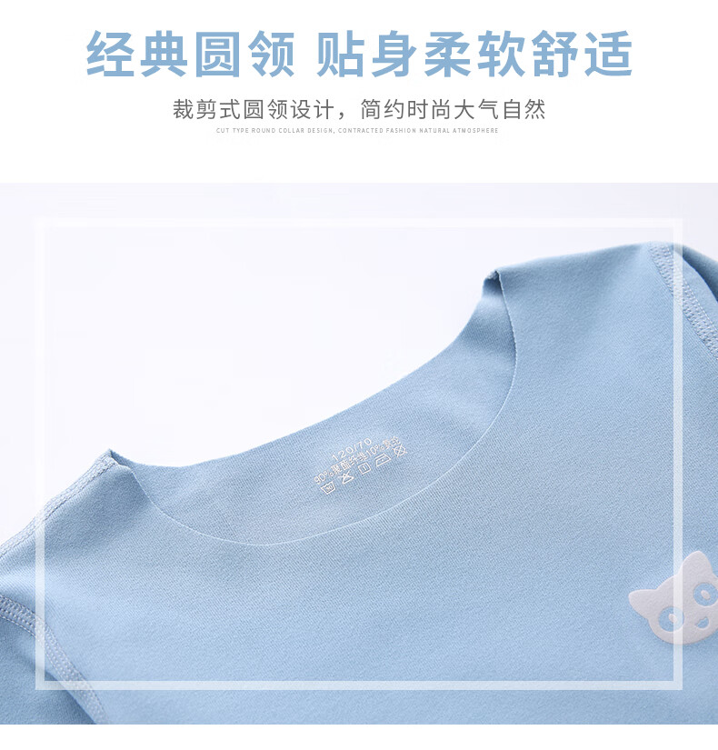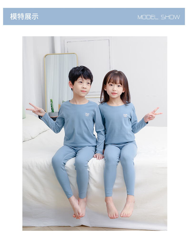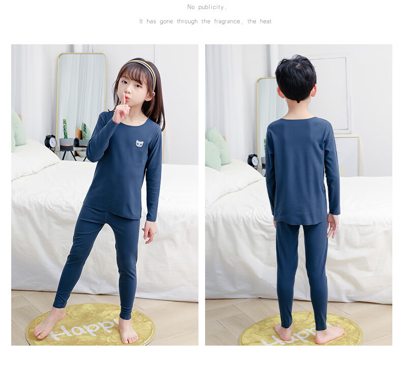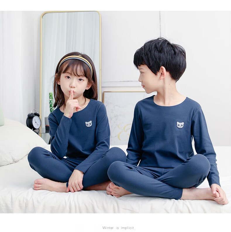 无痕儿童保暖内衣男童女童秋冬打底衫男孩秋季中大童秋衣秋裤套装 深蓝色-小猫头 130 cm