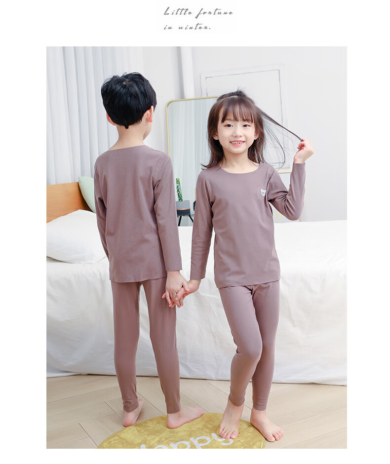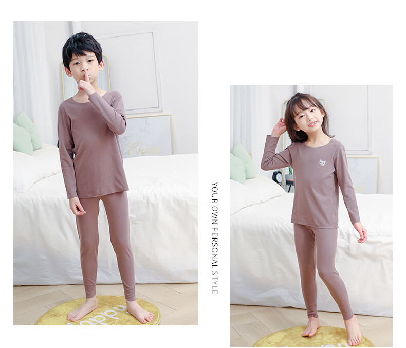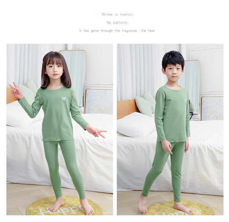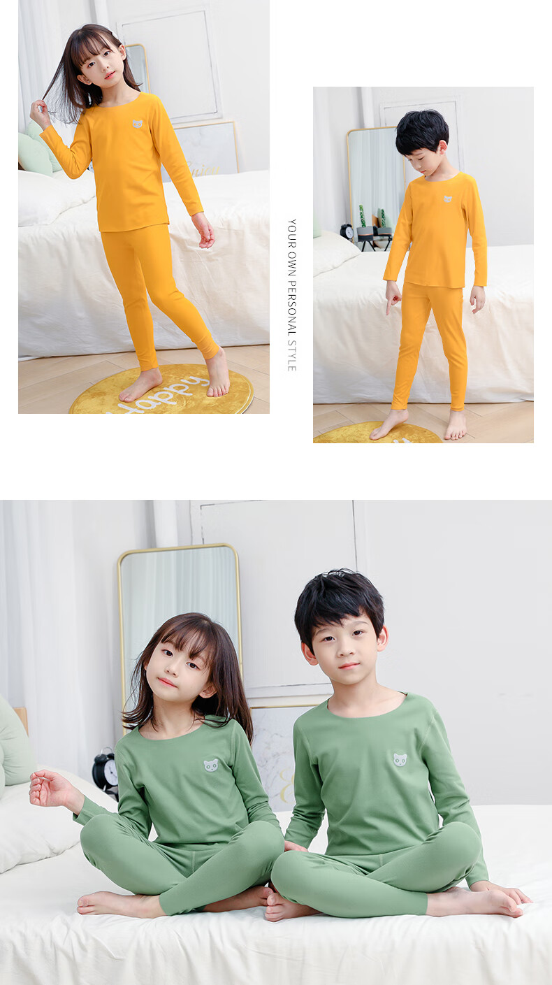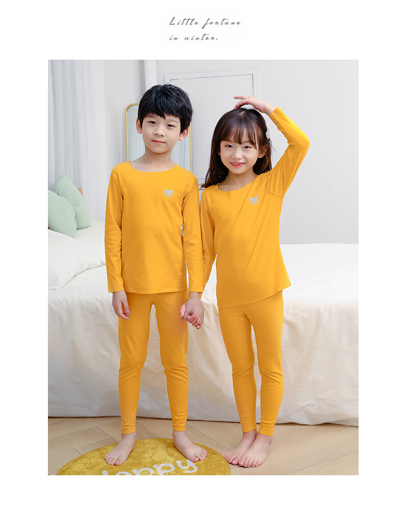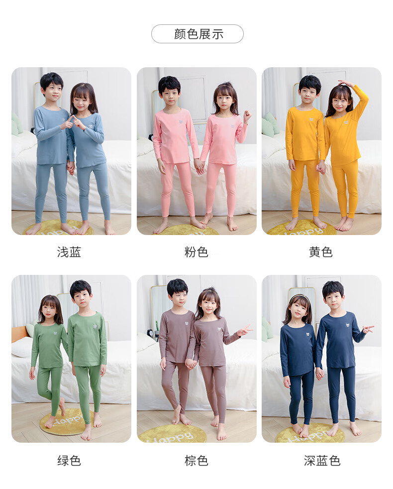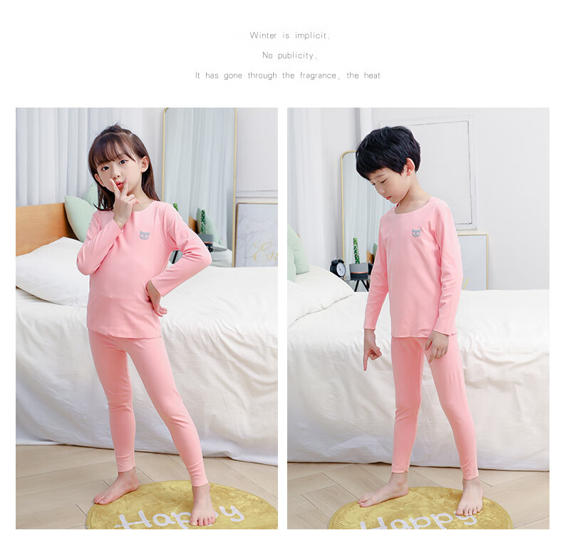 无痕儿童保暖内衣男童女童秋冬打底衫男孩秋季中大童秋衣秋裤套装 深蓝色-小猫头 130 cm
