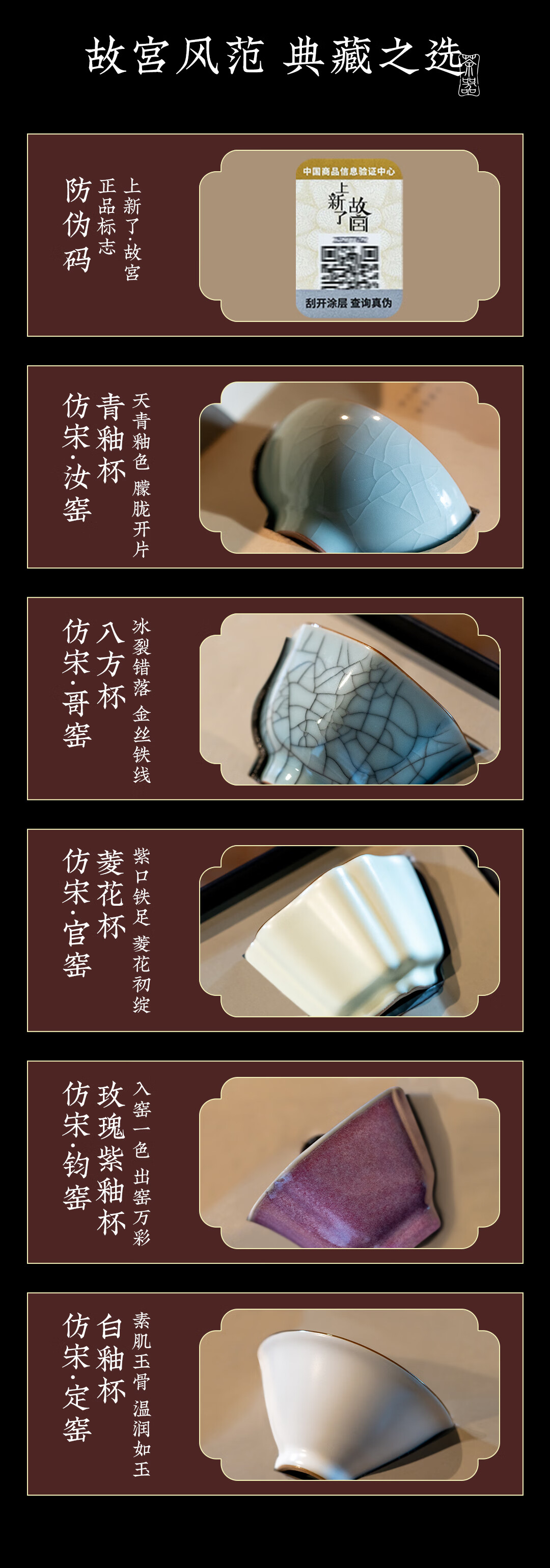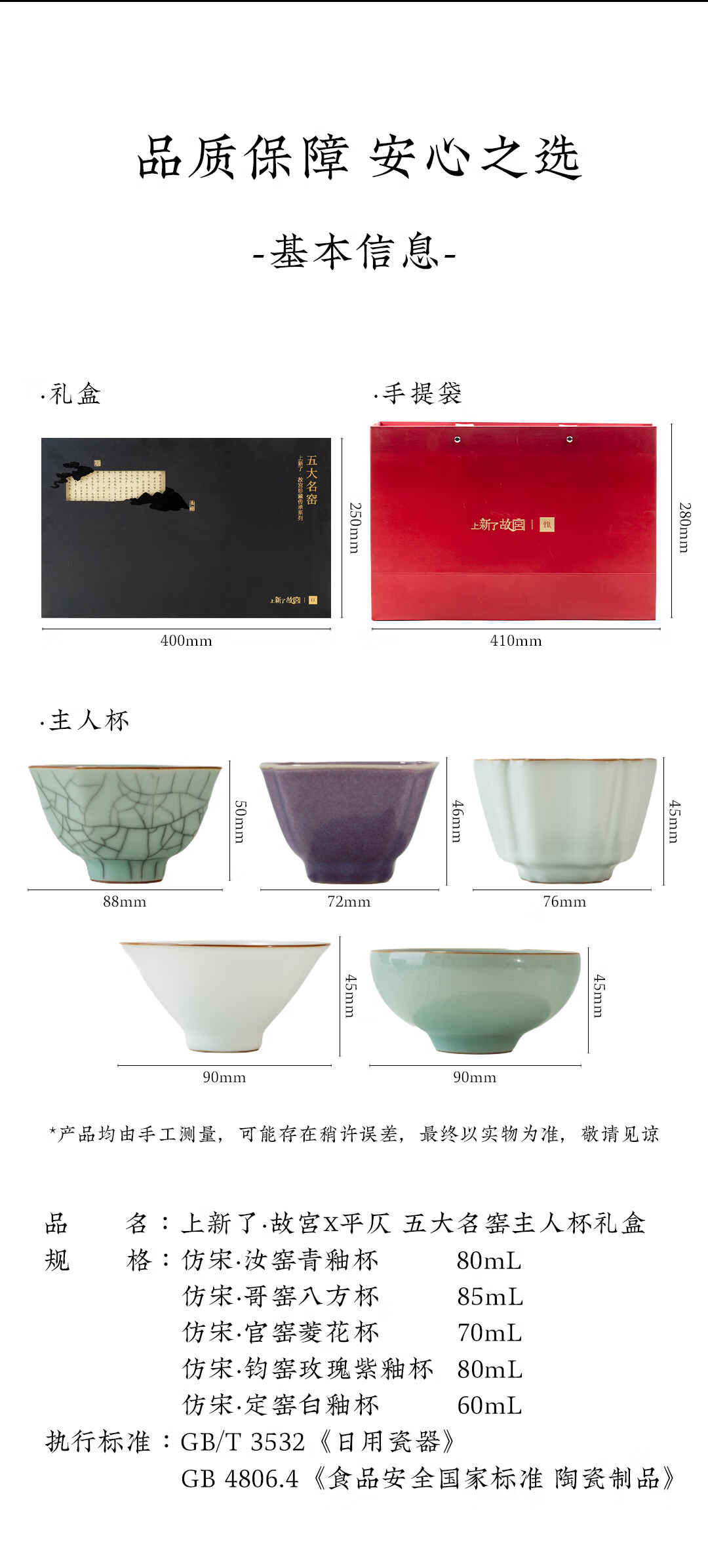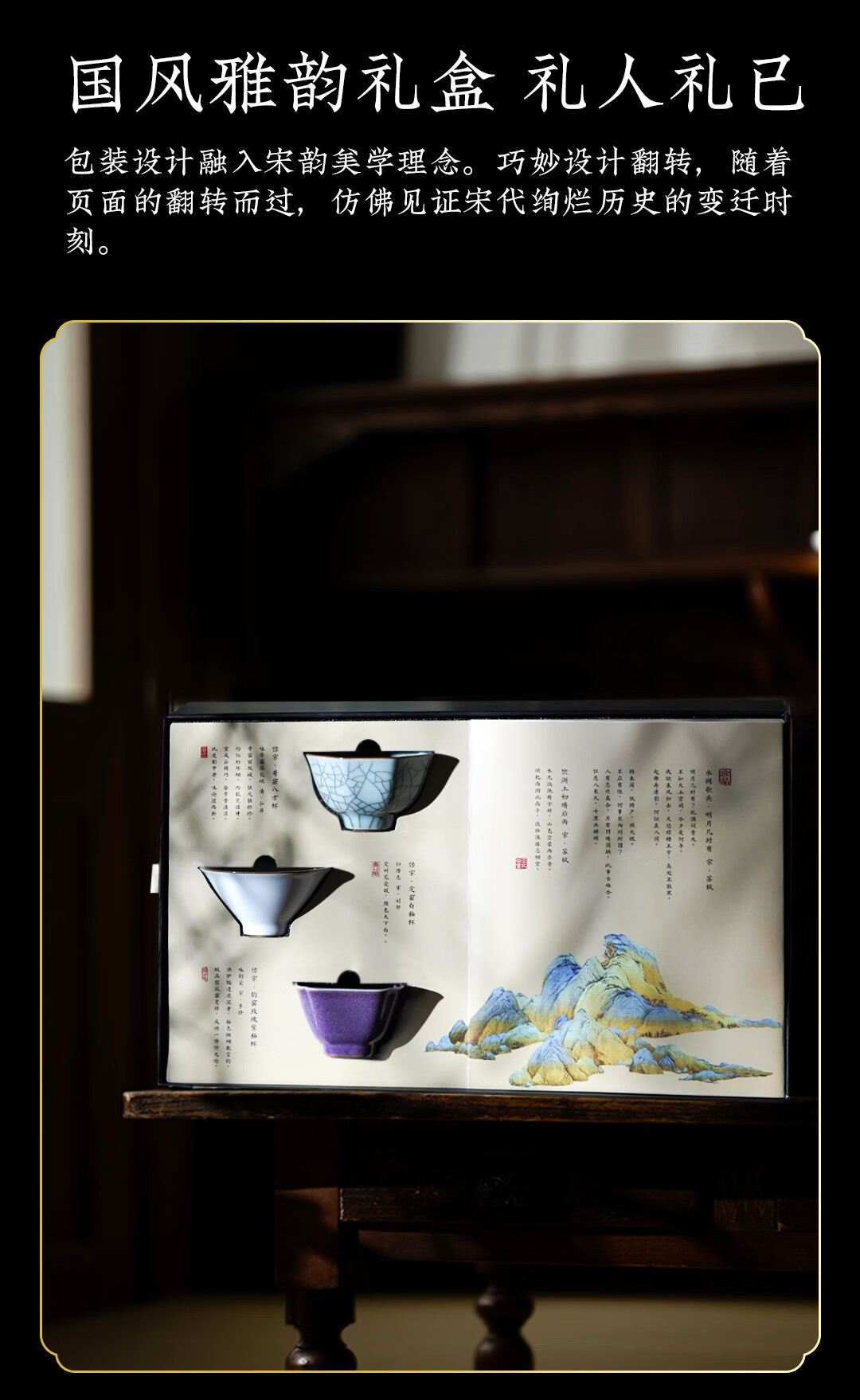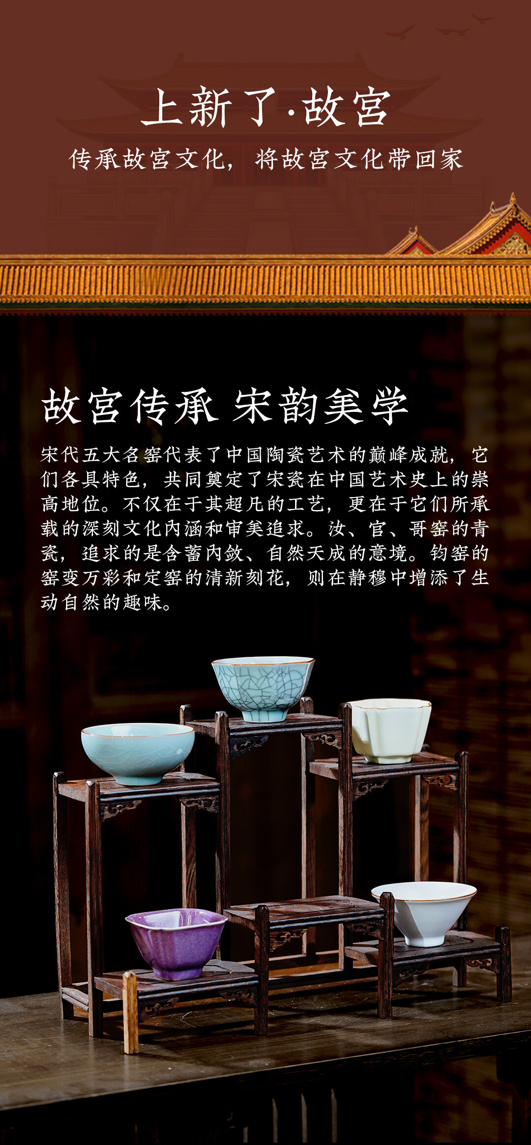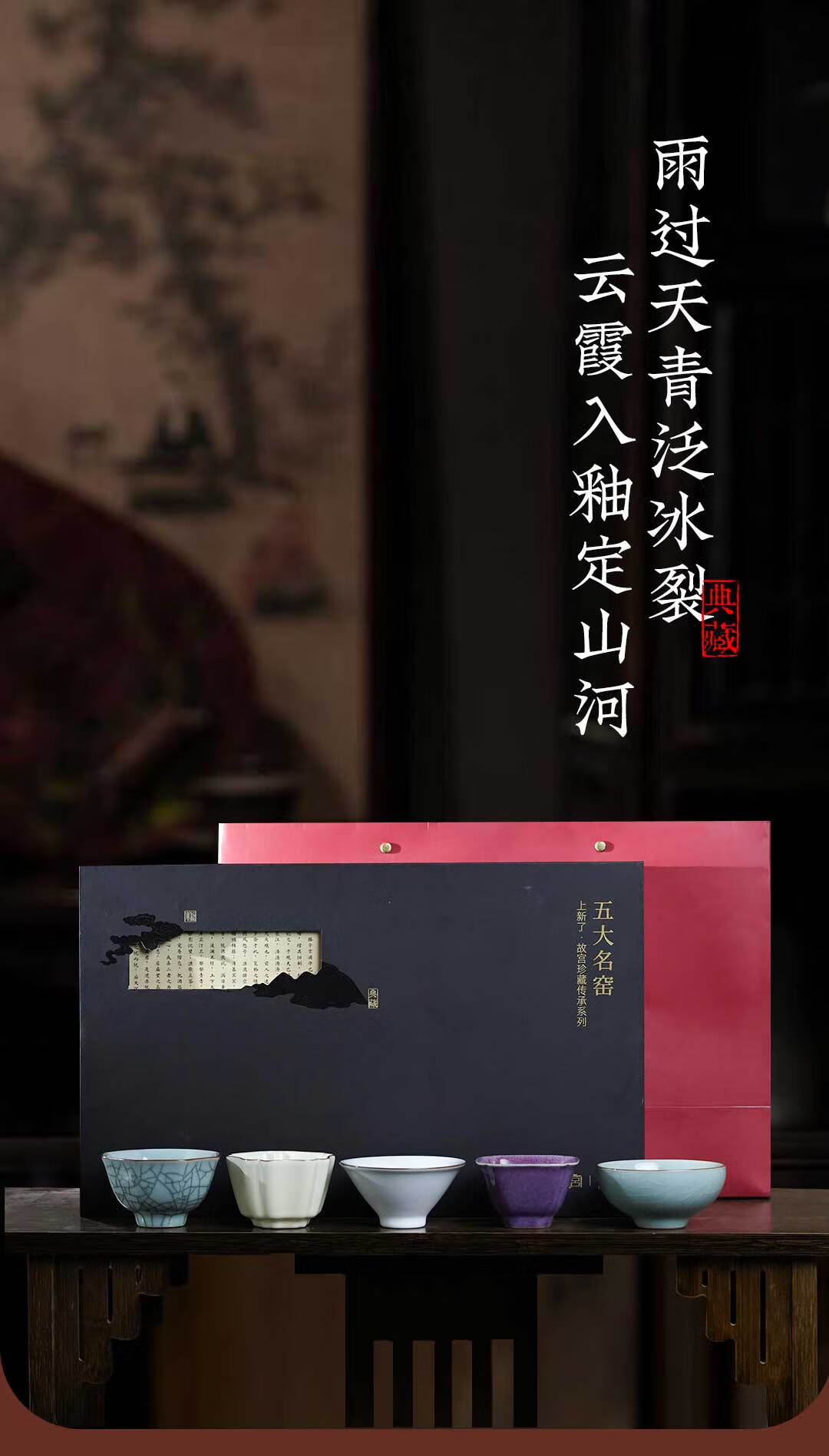 上新了文创 故宫功夫茶杯套装 国风陶瓷传承高端礼盒送父亲长辈领导生日礼物 五大名窑