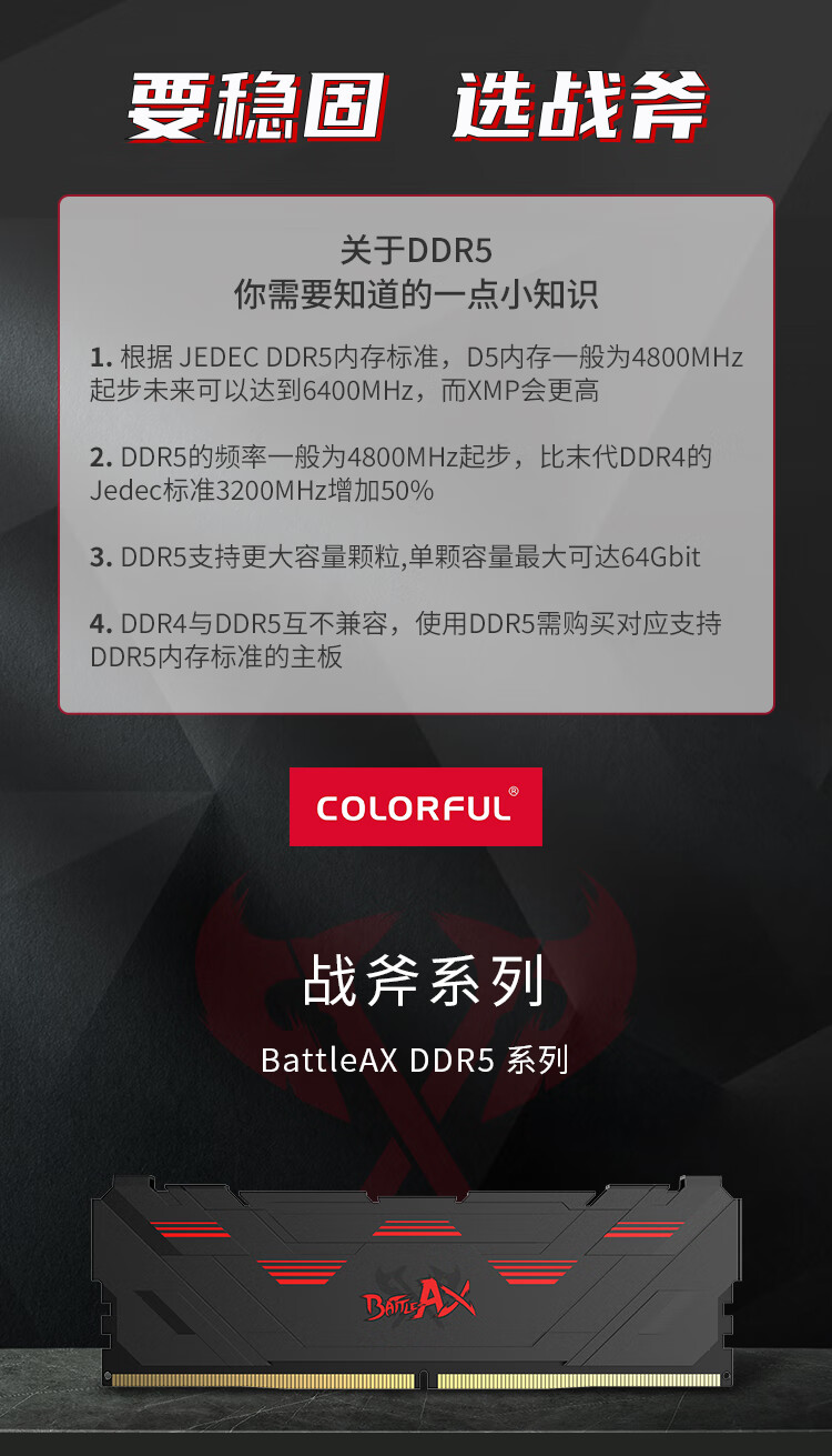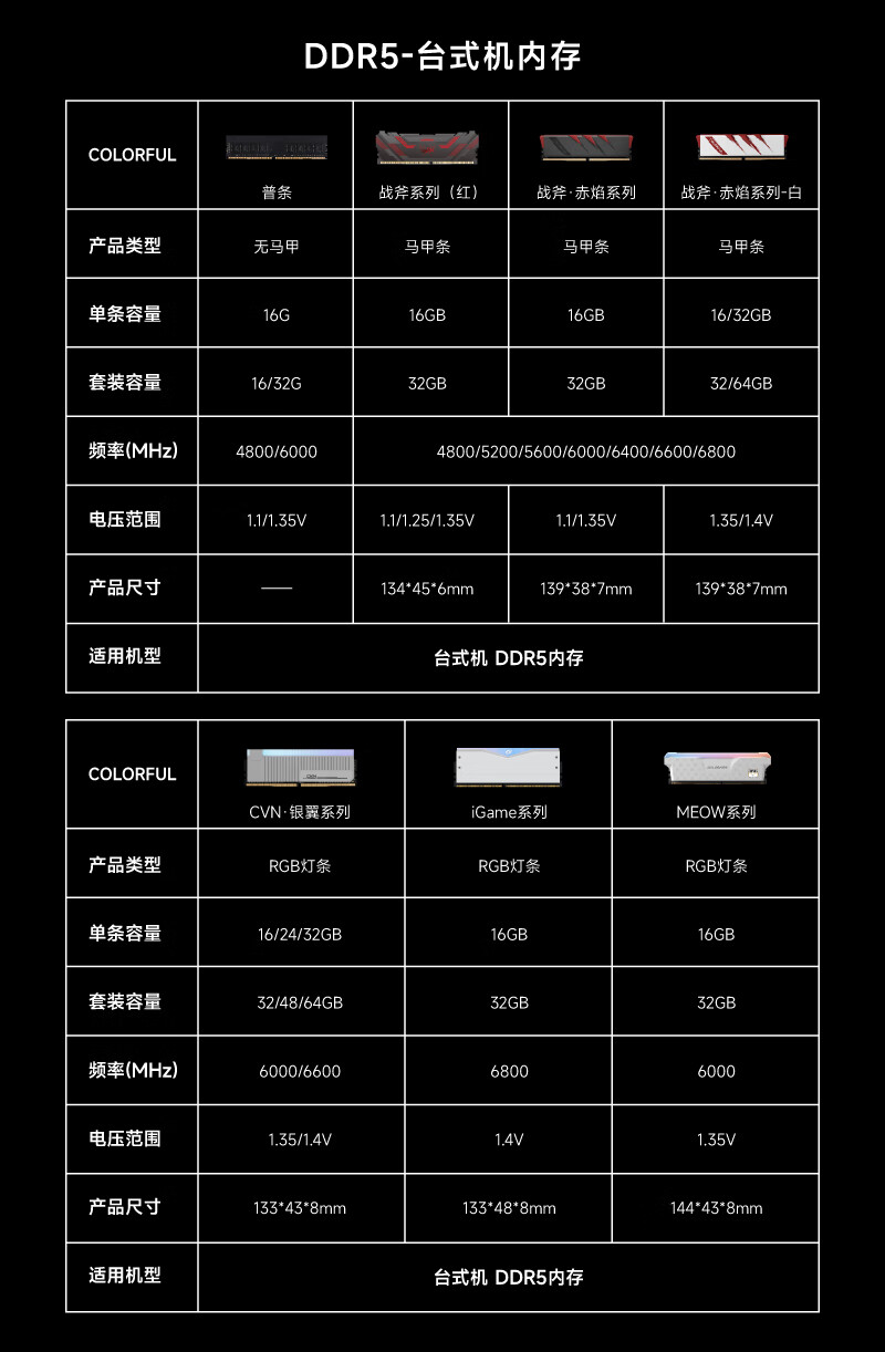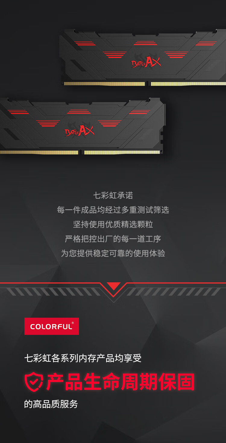 七彩虹(Colorful)16G DDR5 6000 台式机内存条 马甲条 战斧系列·陨铁黑 C38