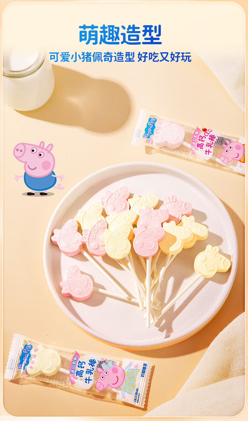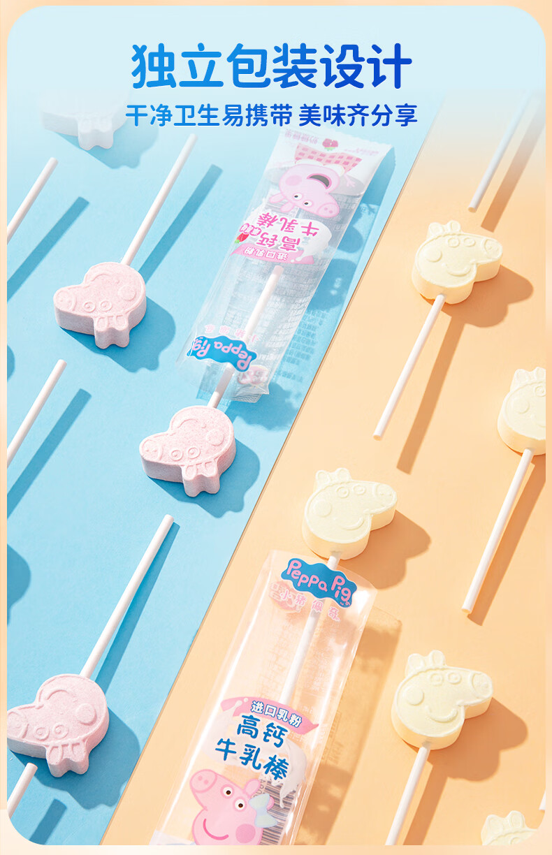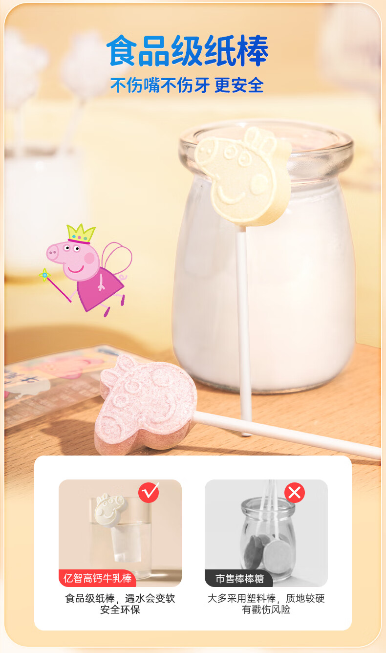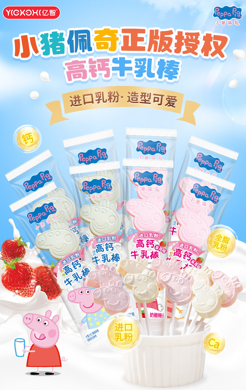 亿智小猪佩奇高钙牛乳棒棒糖果进口奶源零蔗糖幼儿园开学礼物休闲零食 高钙牛乳棒糖混合口味6g*20支