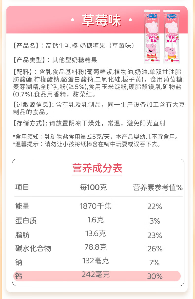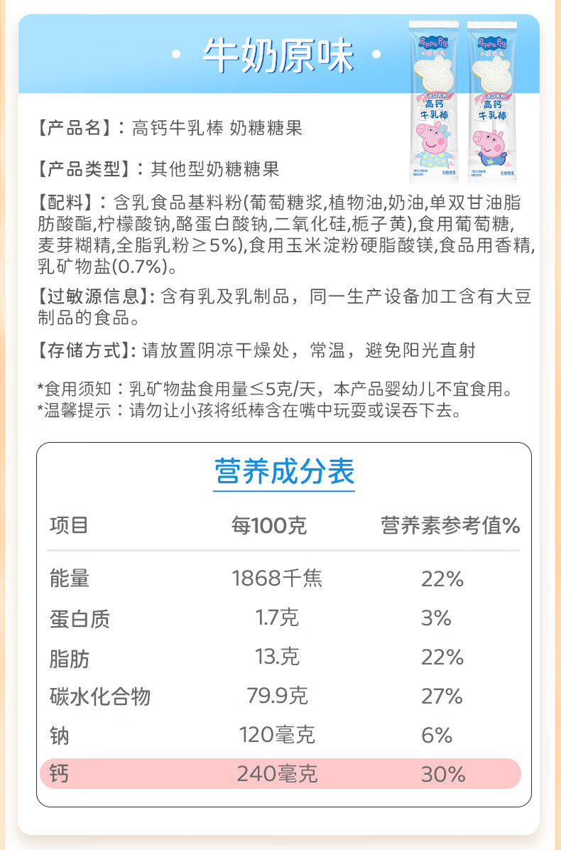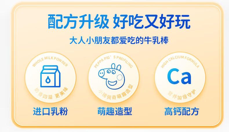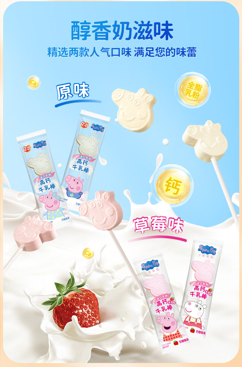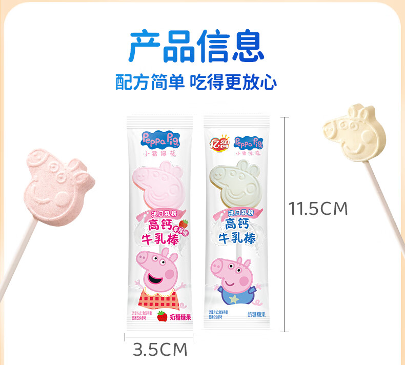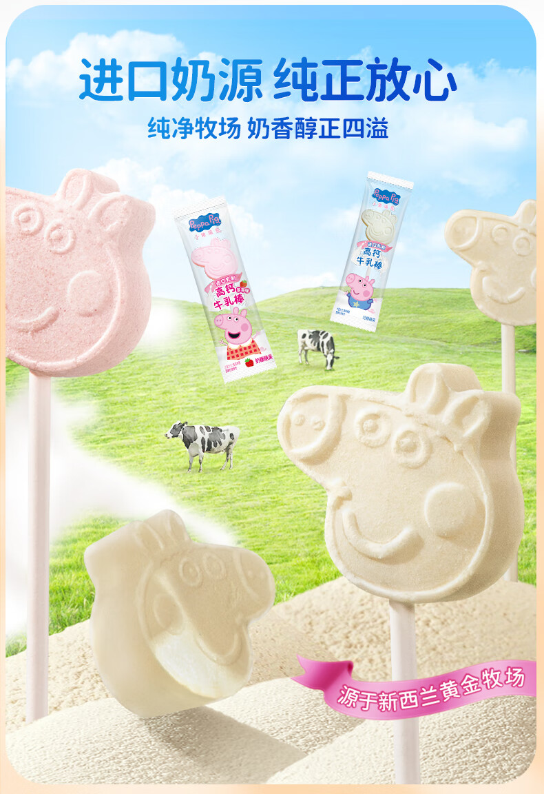 亿智小猪佩奇高钙牛乳棒棒糖果进口奶源零蔗糖幼儿园开学礼物休闲零食 高钙牛乳棒糖混合口味6g*20支