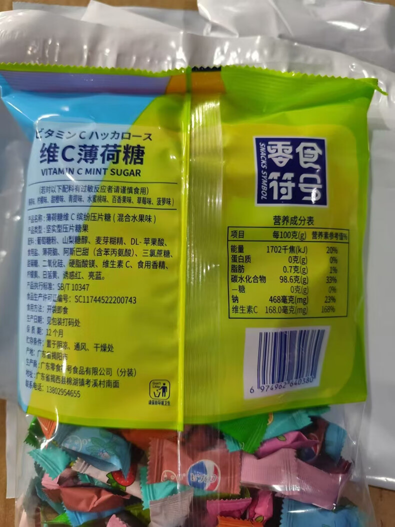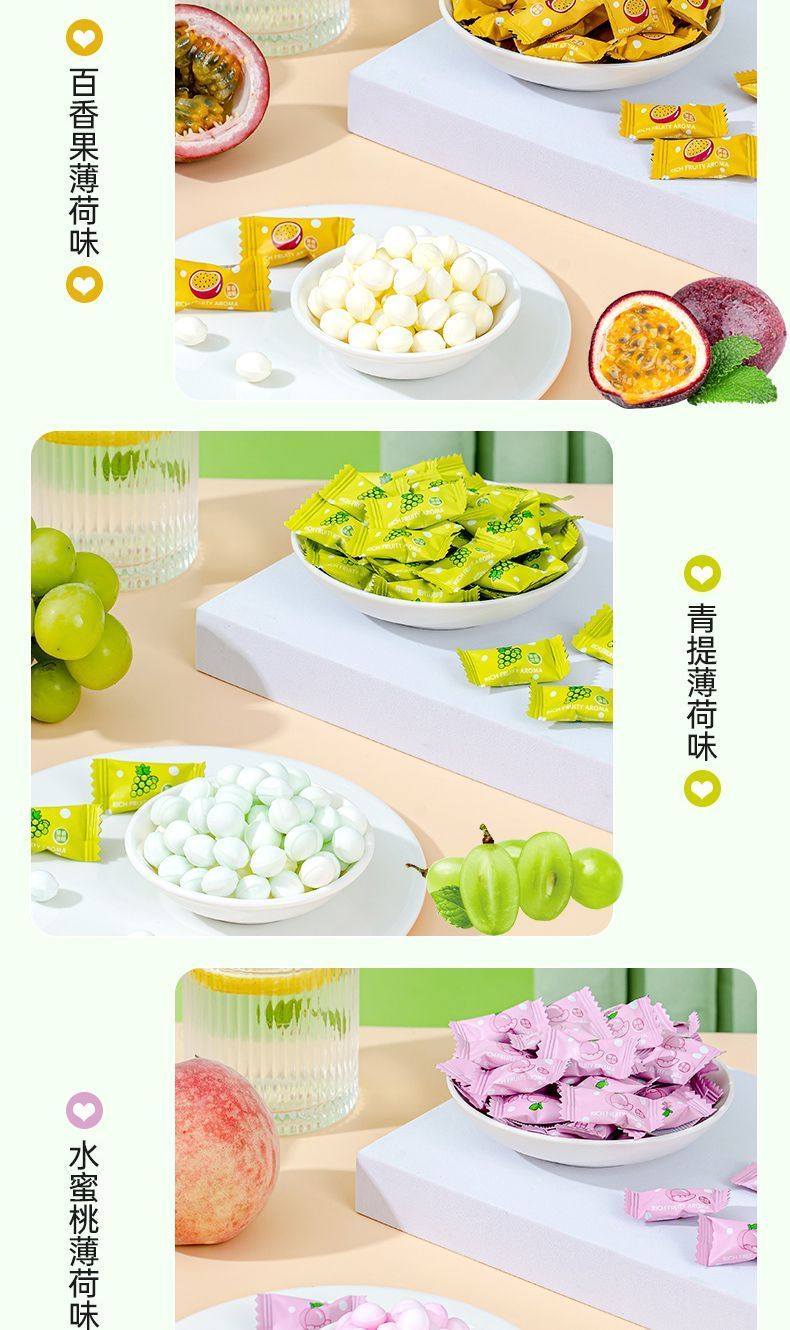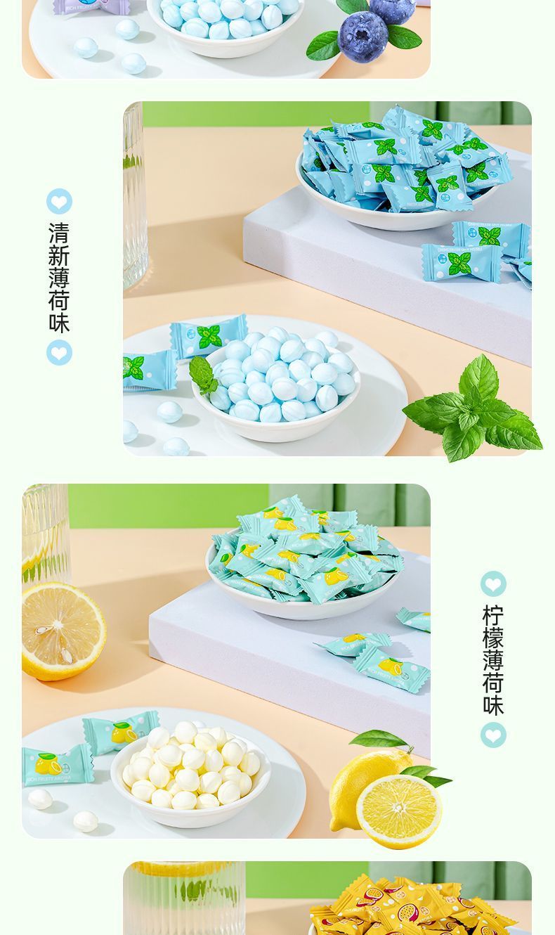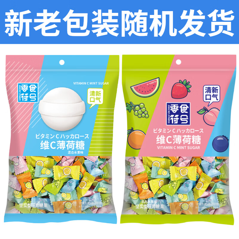 零食符号维C无糖薄荷糖 果味清凉含片口气清新薄荷糖接吻糖高颜值招待糖果 VC无糖薄荷糖1袋【约250颗】