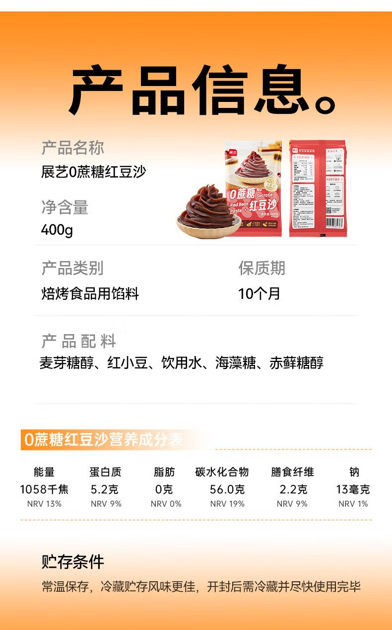 展艺0蔗糖红豆沙馅400g 包子豆沙蛋黄酥驴打滚面包烘焙原馅料早餐食材