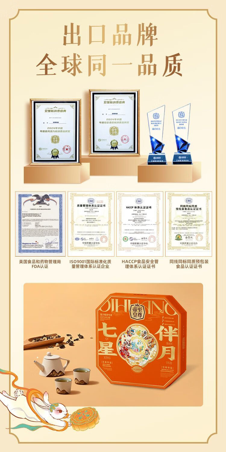 红允帝皇七星伴月月饼礼盒经典广式手作老味道礼盒 帝皇七星伴月月饼礼盒经典广式手