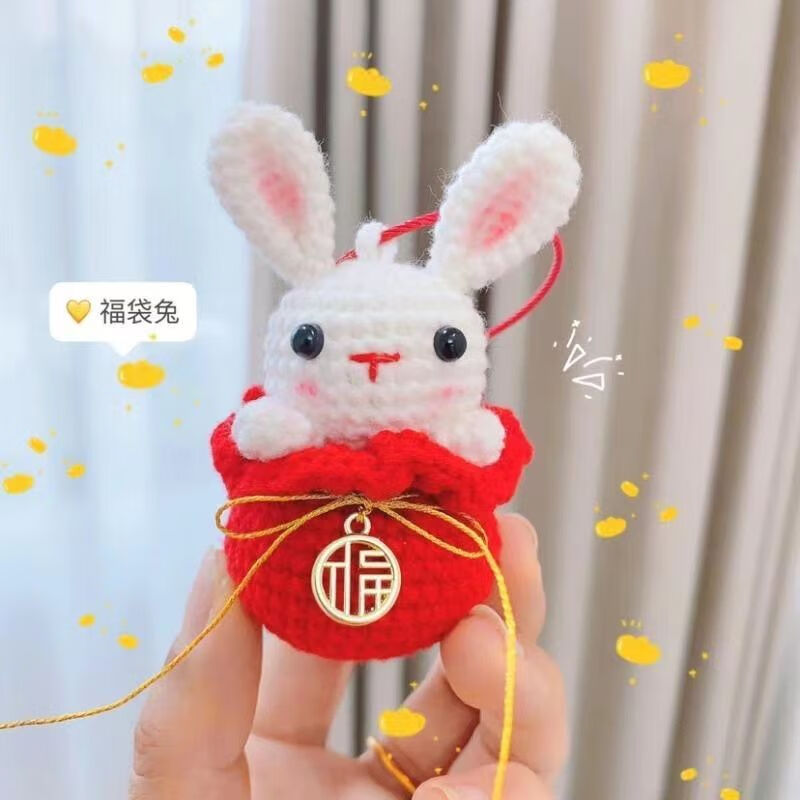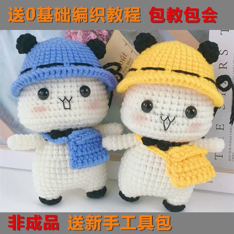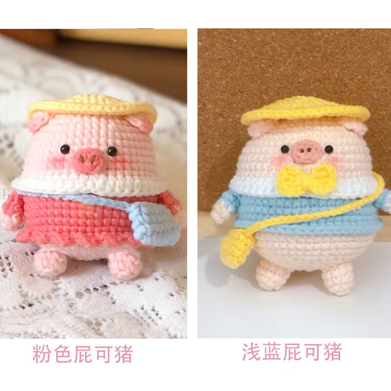勾线手工编织毛线diy材料包手工编织制作勾线玩偶挂件毛线娃娃解 粉+蓝猫组合材料包
