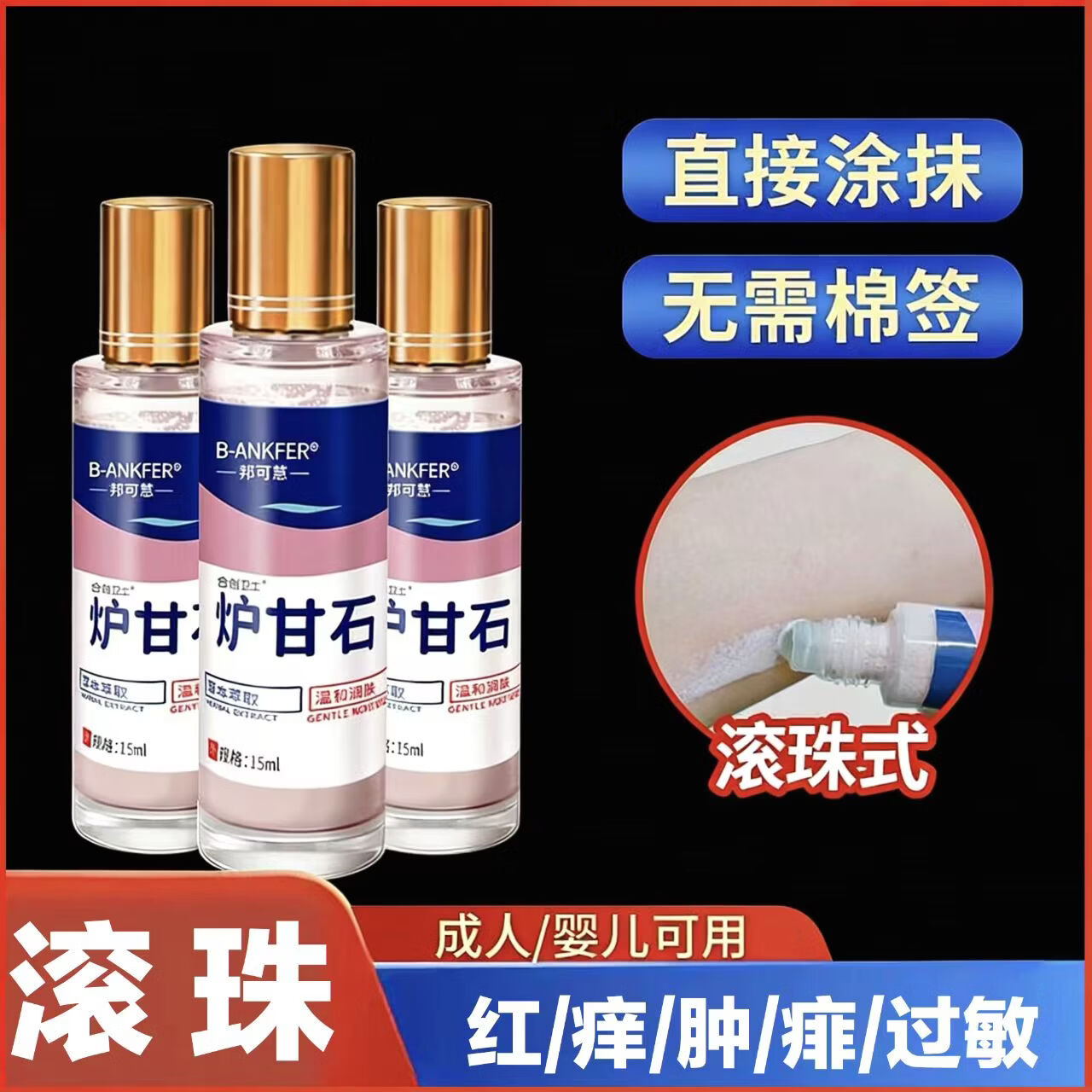 滚珠式炉甘石抑菌洗液洗剂水外用卢甘石孕妇儿童皮肤痒乳膏软膏粉 滚珠炉甘石5瓶【干红痒肿】