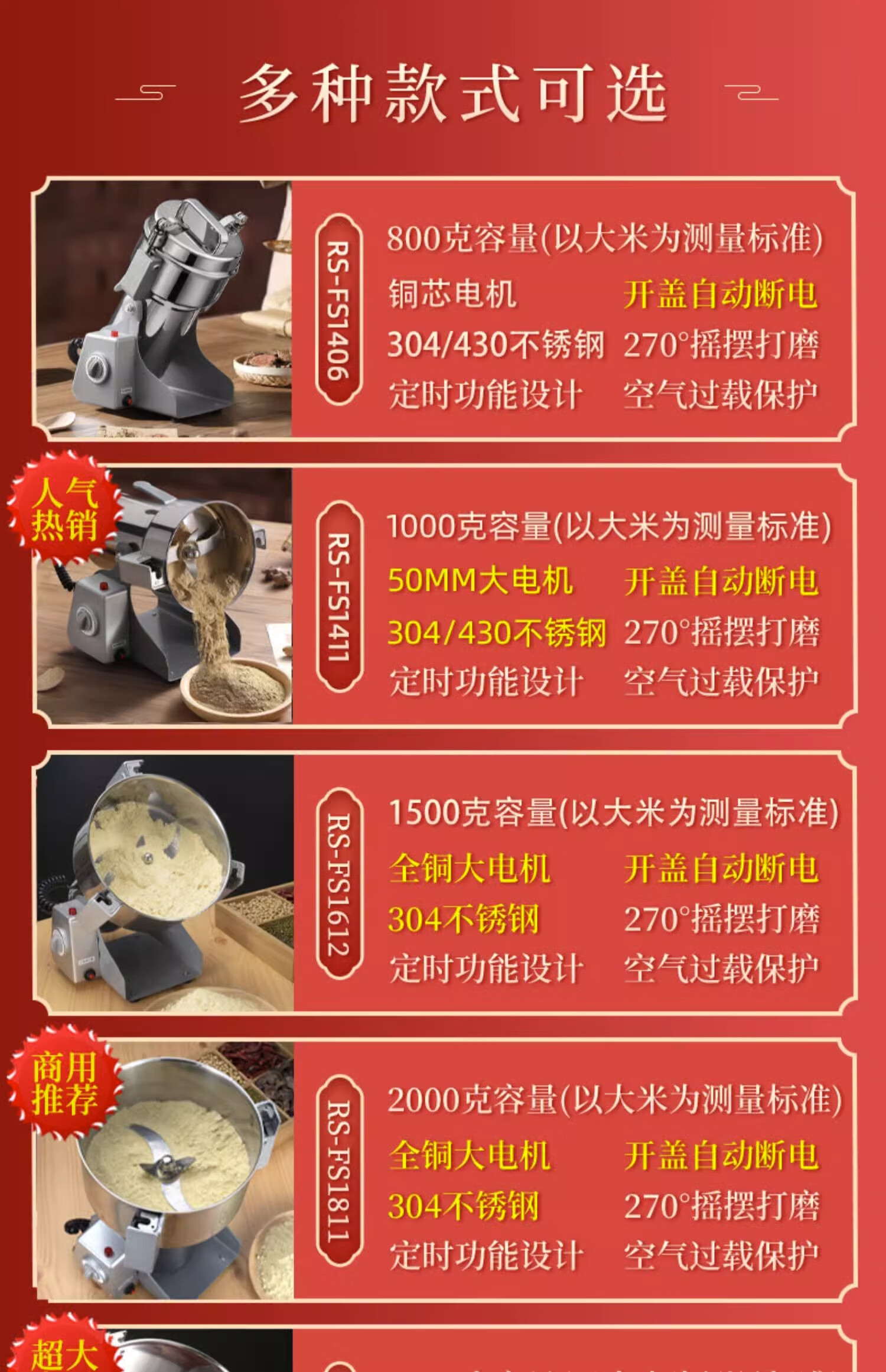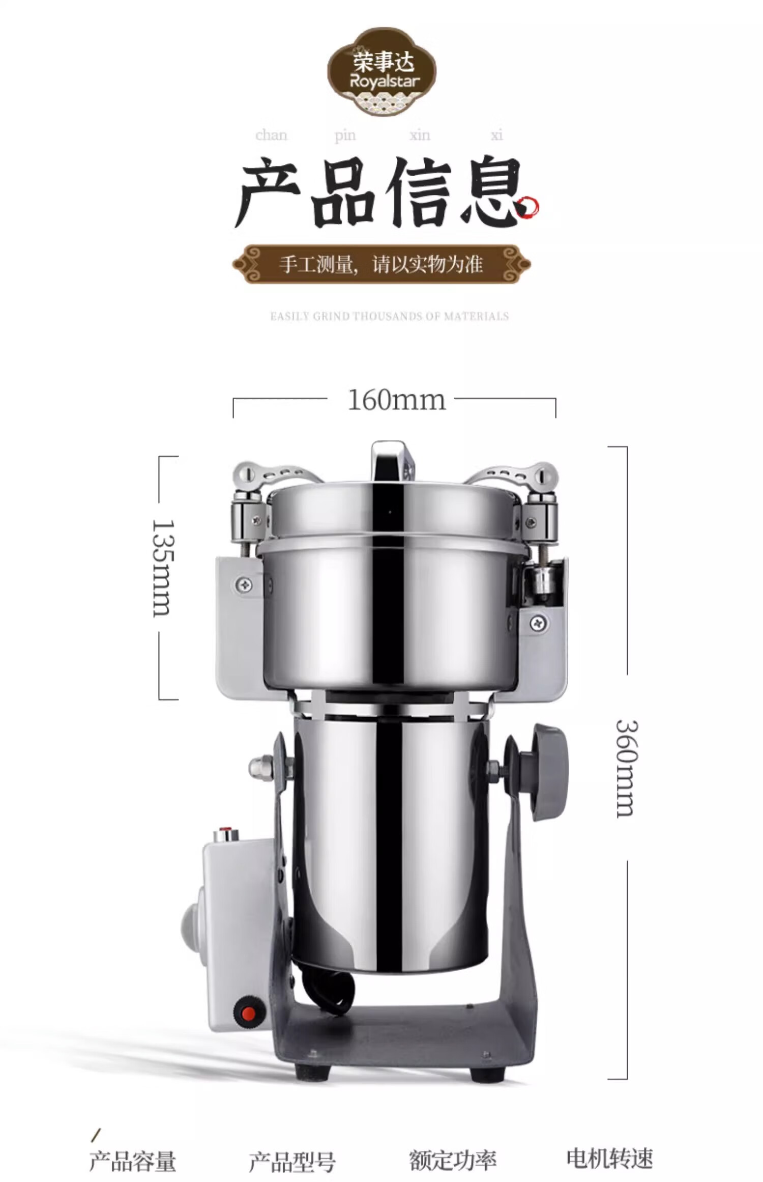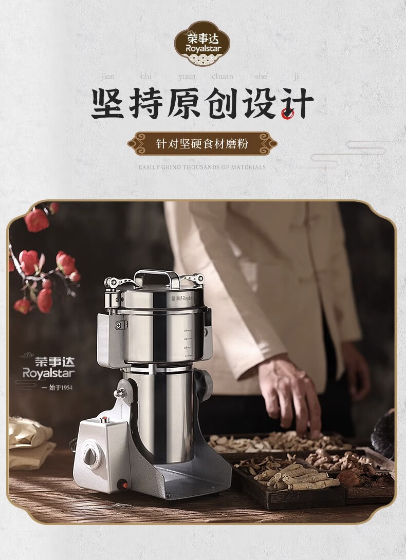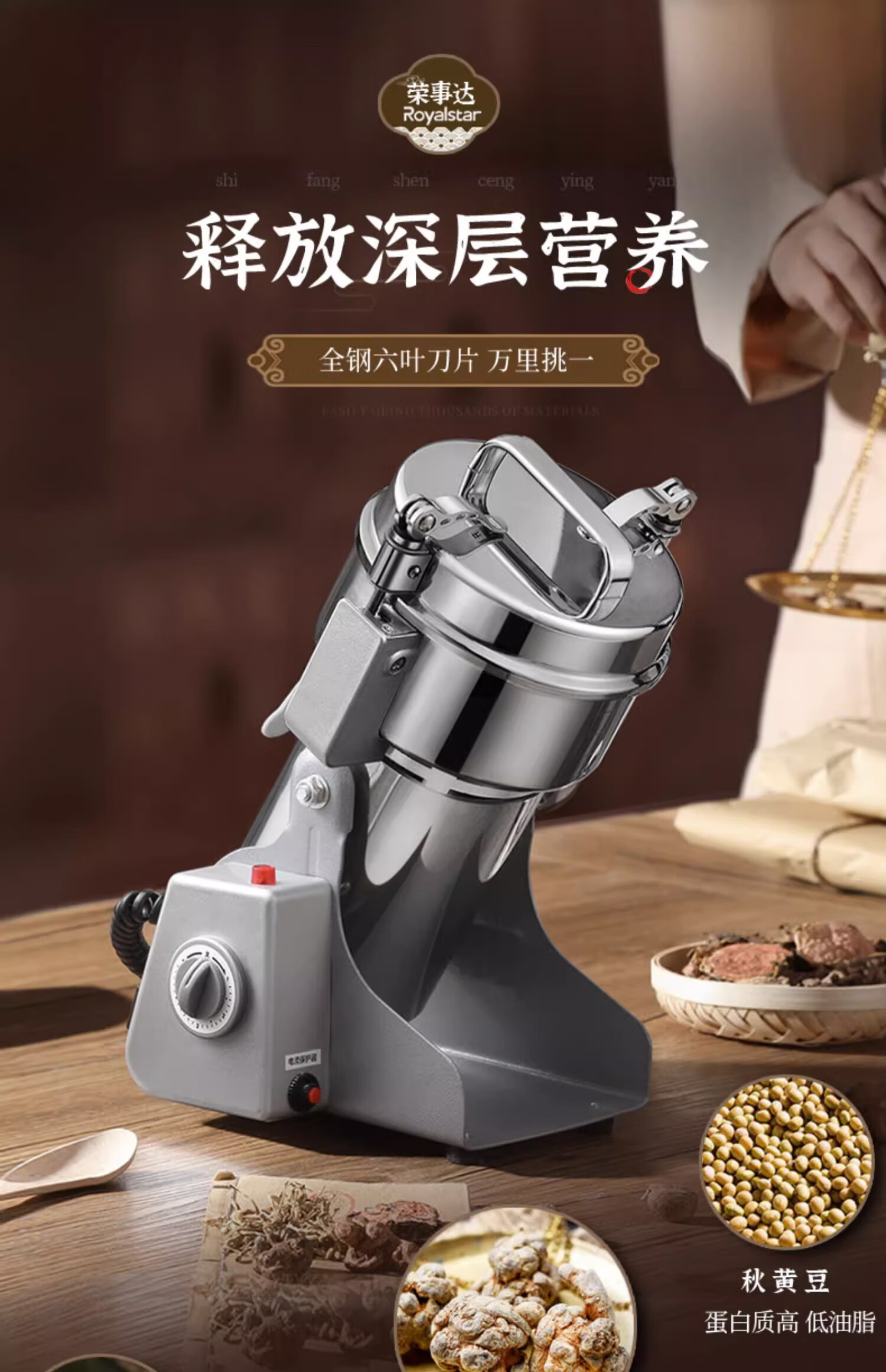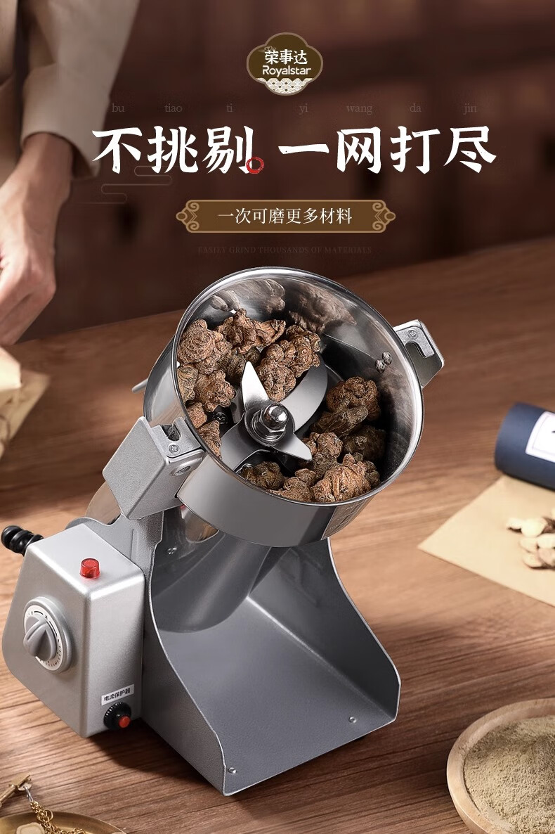 荣事达粉碎机中药材打粉机超细研磨机家用小型五谷杂粮商用磨粉机 【荣事达600克】304粉碎仓(全国联保/送大礼包