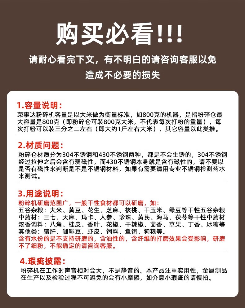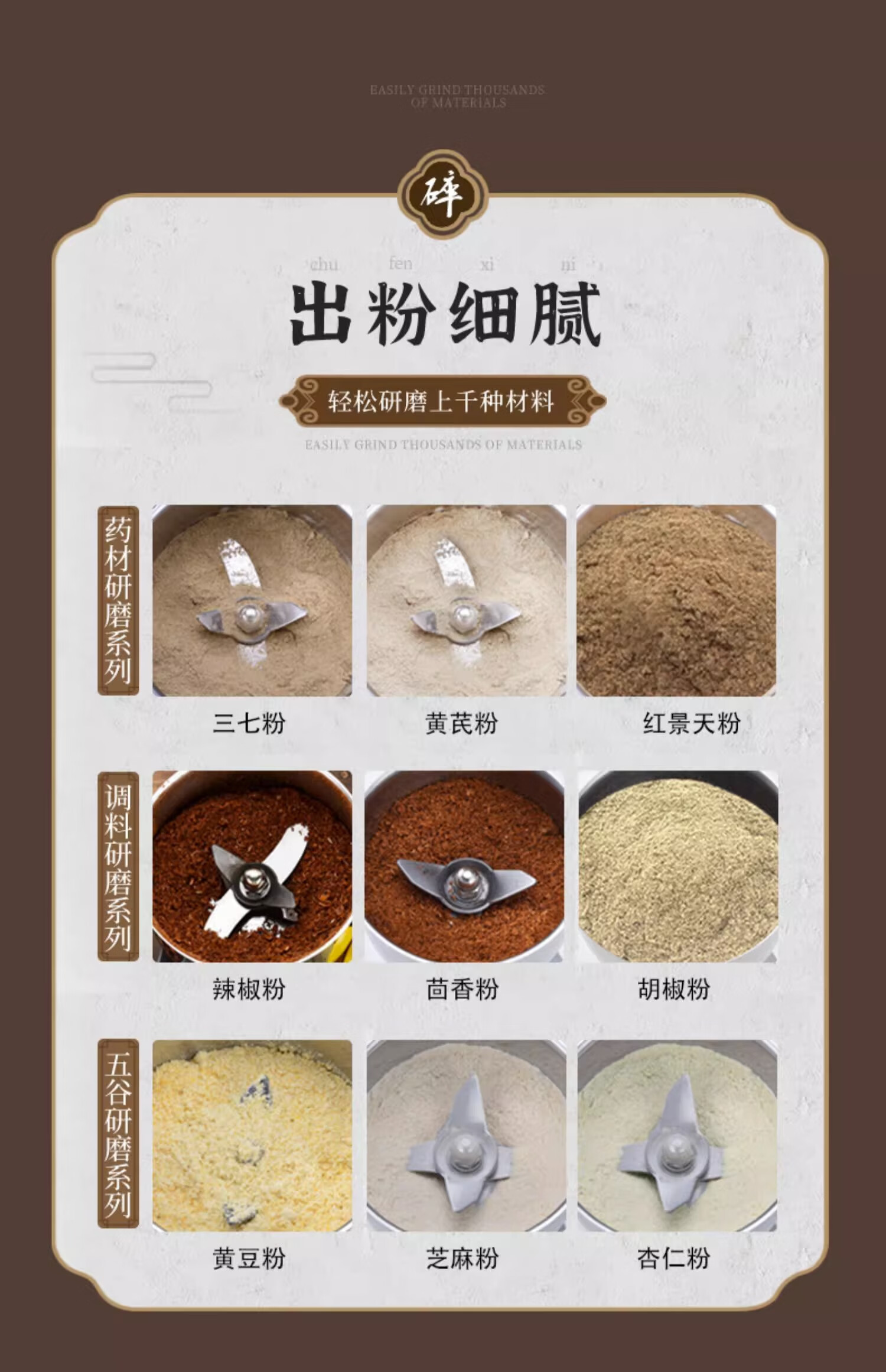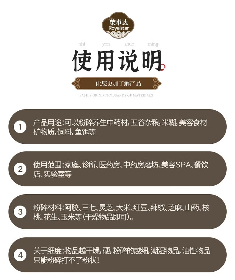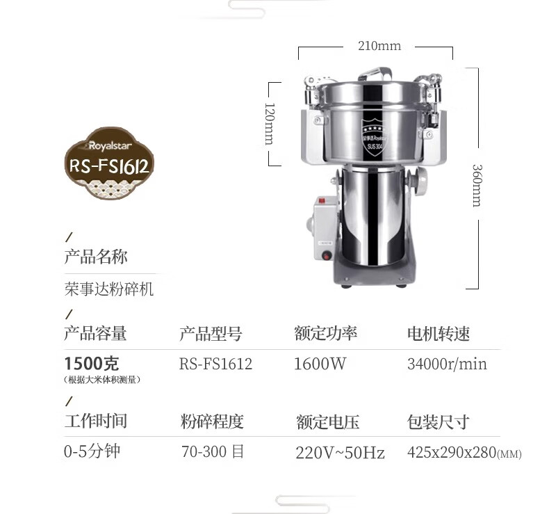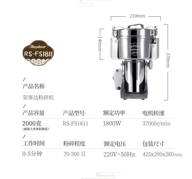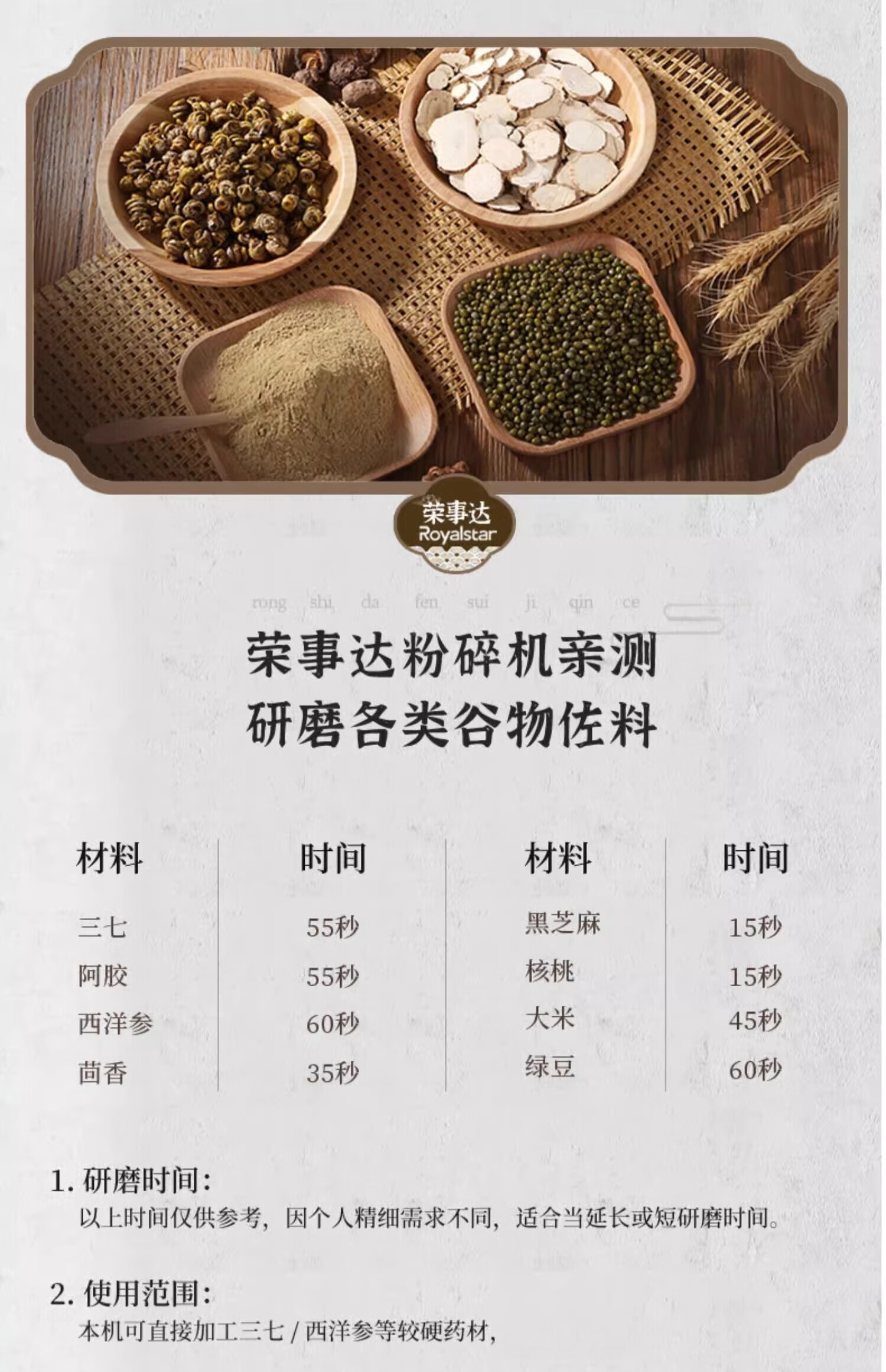 荣事达粉碎机中药材打粉机超细研磨机家用小型五谷杂粮商用磨粉机 【荣事达600克】304粉碎仓(全国联保/送大礼包