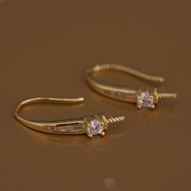 恒久叶金店款耳钩耳坠耳饰空托配饰品DIY珍珠配件s925银色日韩版微 s925银--金色k金工艺不含珍珠