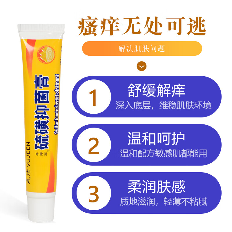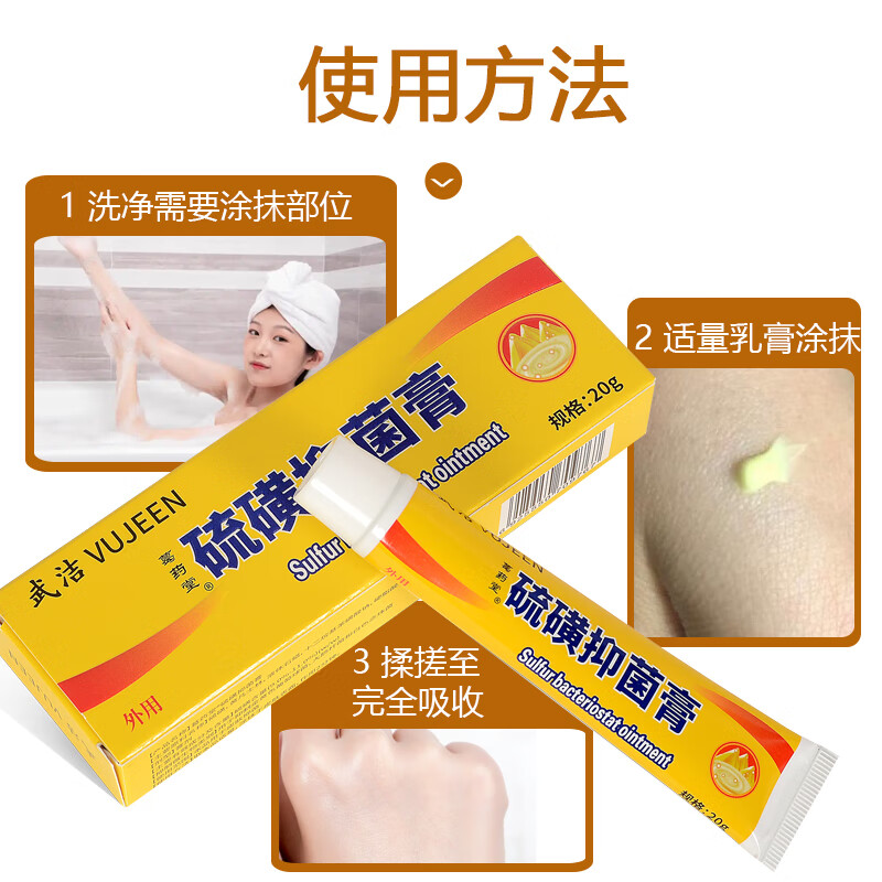 武洁硫磺软膏抑菌硫磺乳膏抑菌20g硫磺膏10%脚气去螨虫疥虫虱虫阴囊